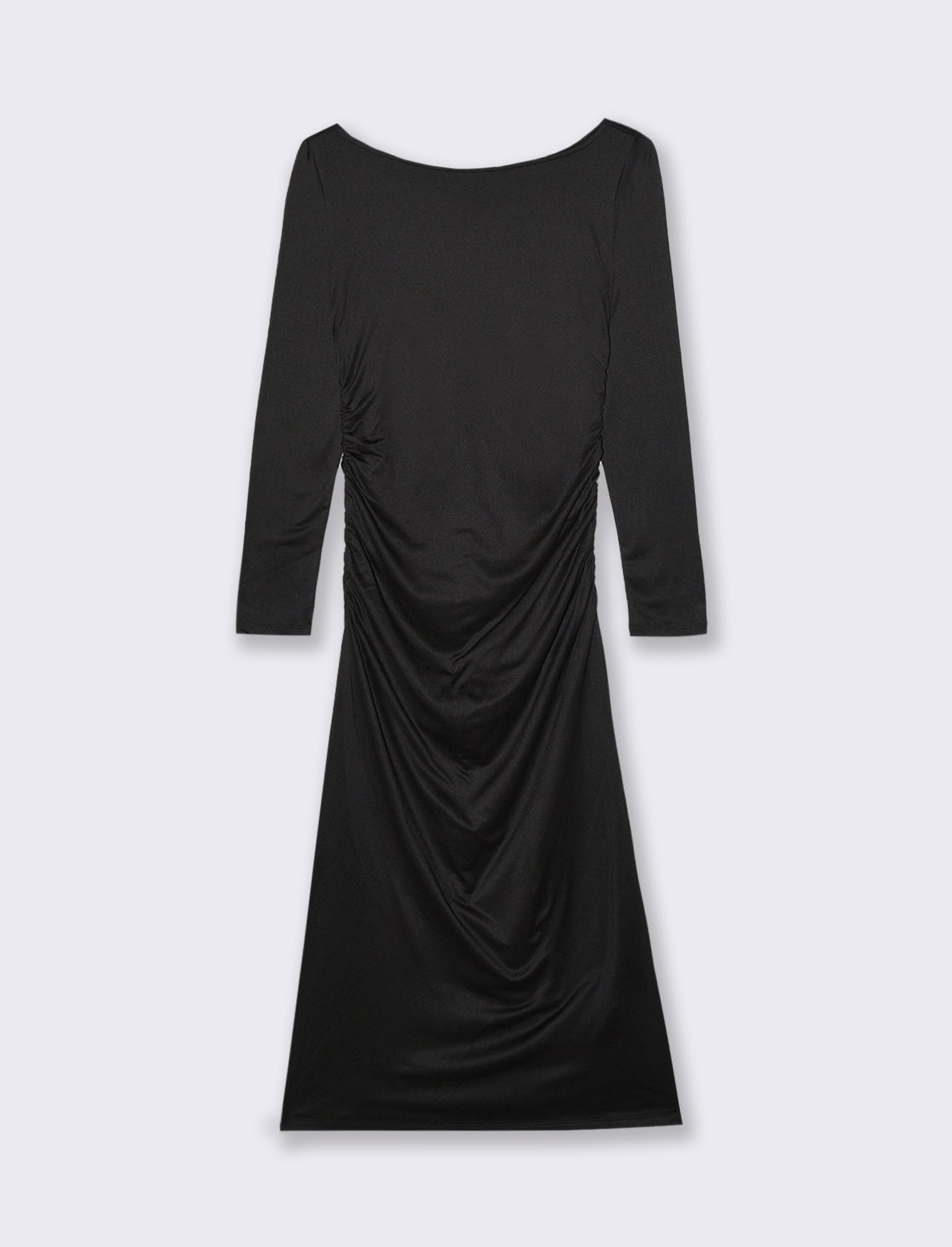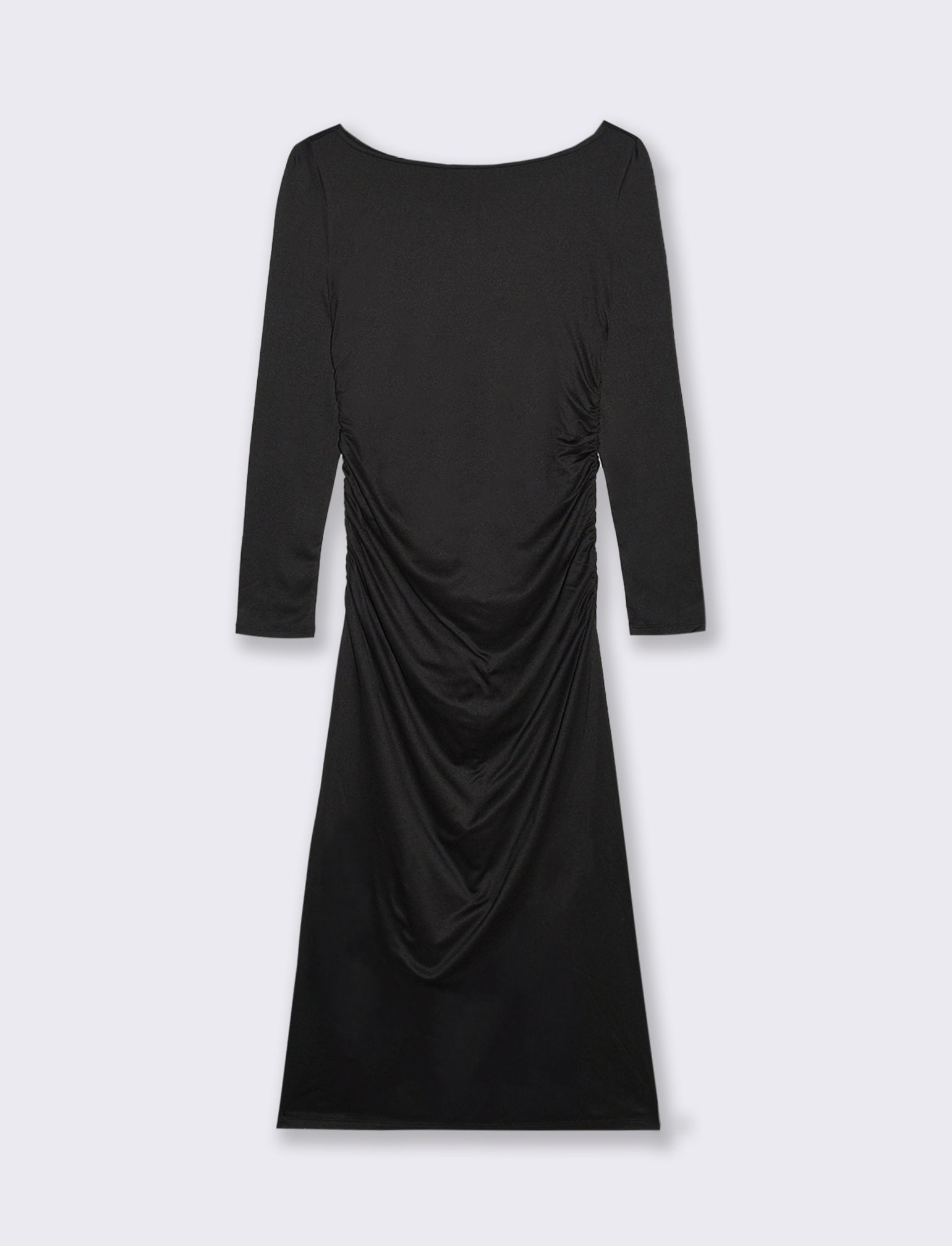 ABITO LONGUETTE MANICA LUNGA CON ARRICCIO SUI FIANCHI E SPACCO CENTRALE SUL RETRO. VESTIBILITÀ SLIM. Il prodotto è di colore Nero