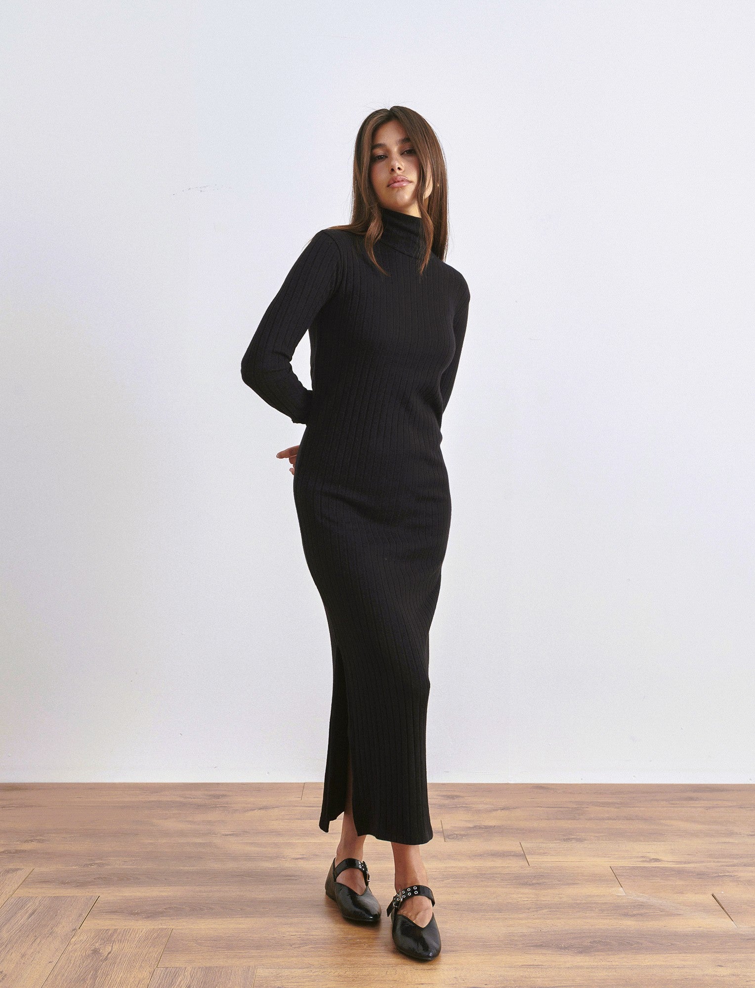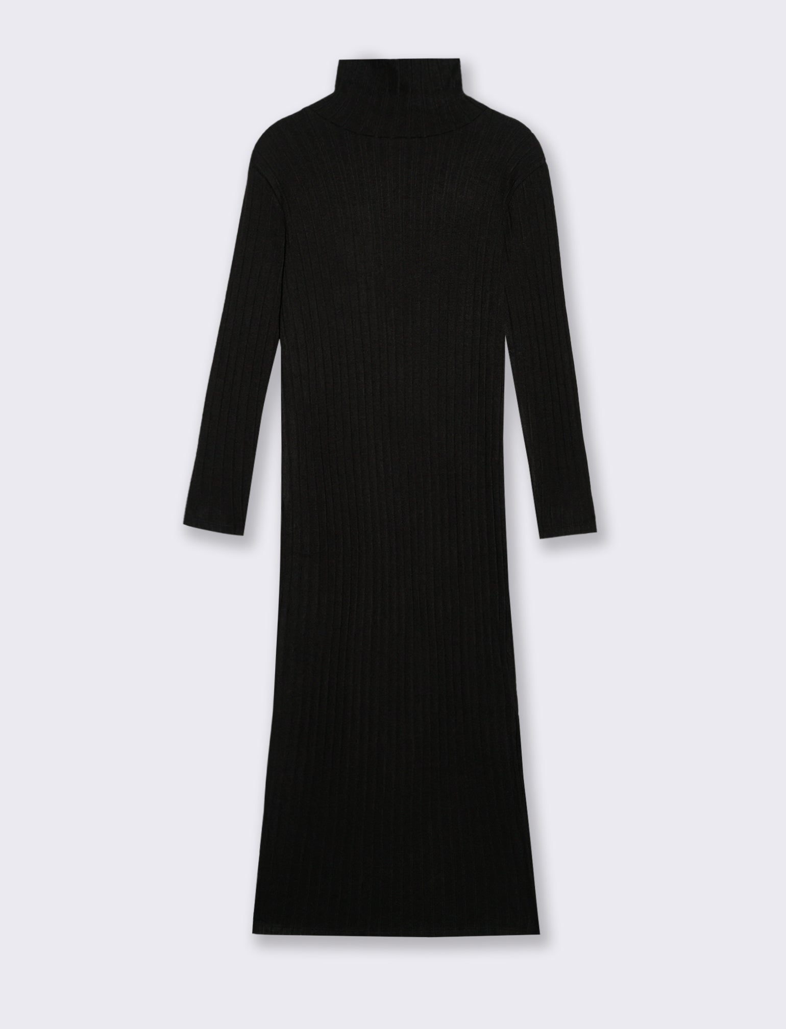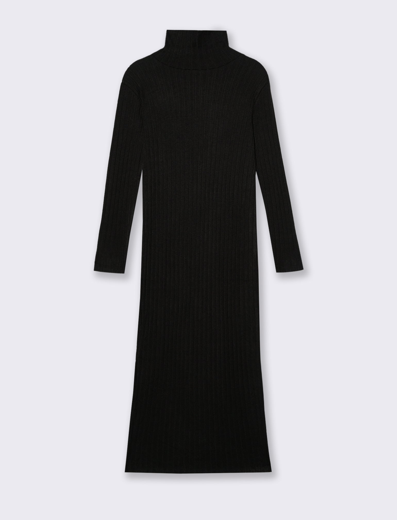 VESTITO LUNGO MANICA LUNGA MEZZOCOLLO CON SPACCHI LATERALI Il prodotto è di colore Nero