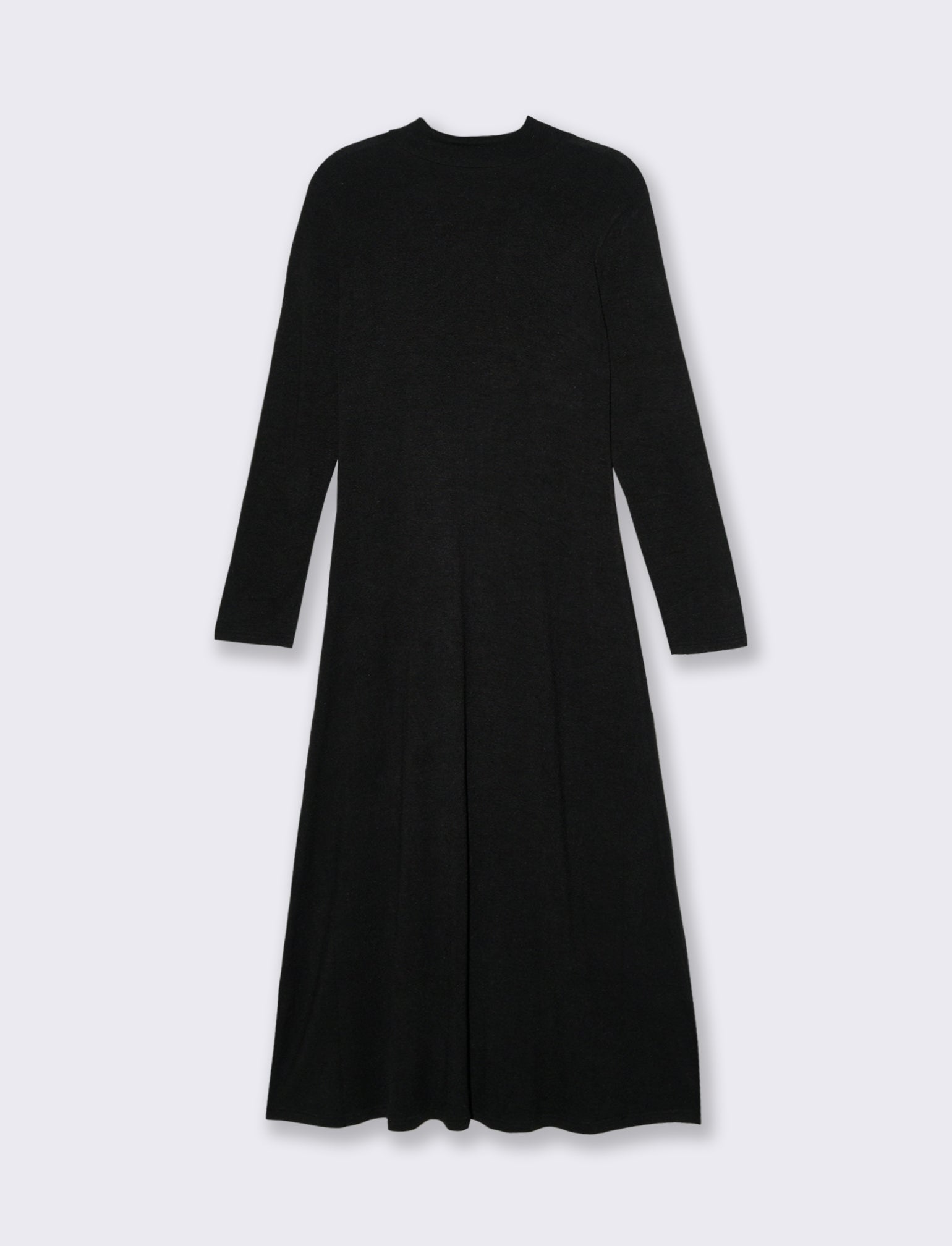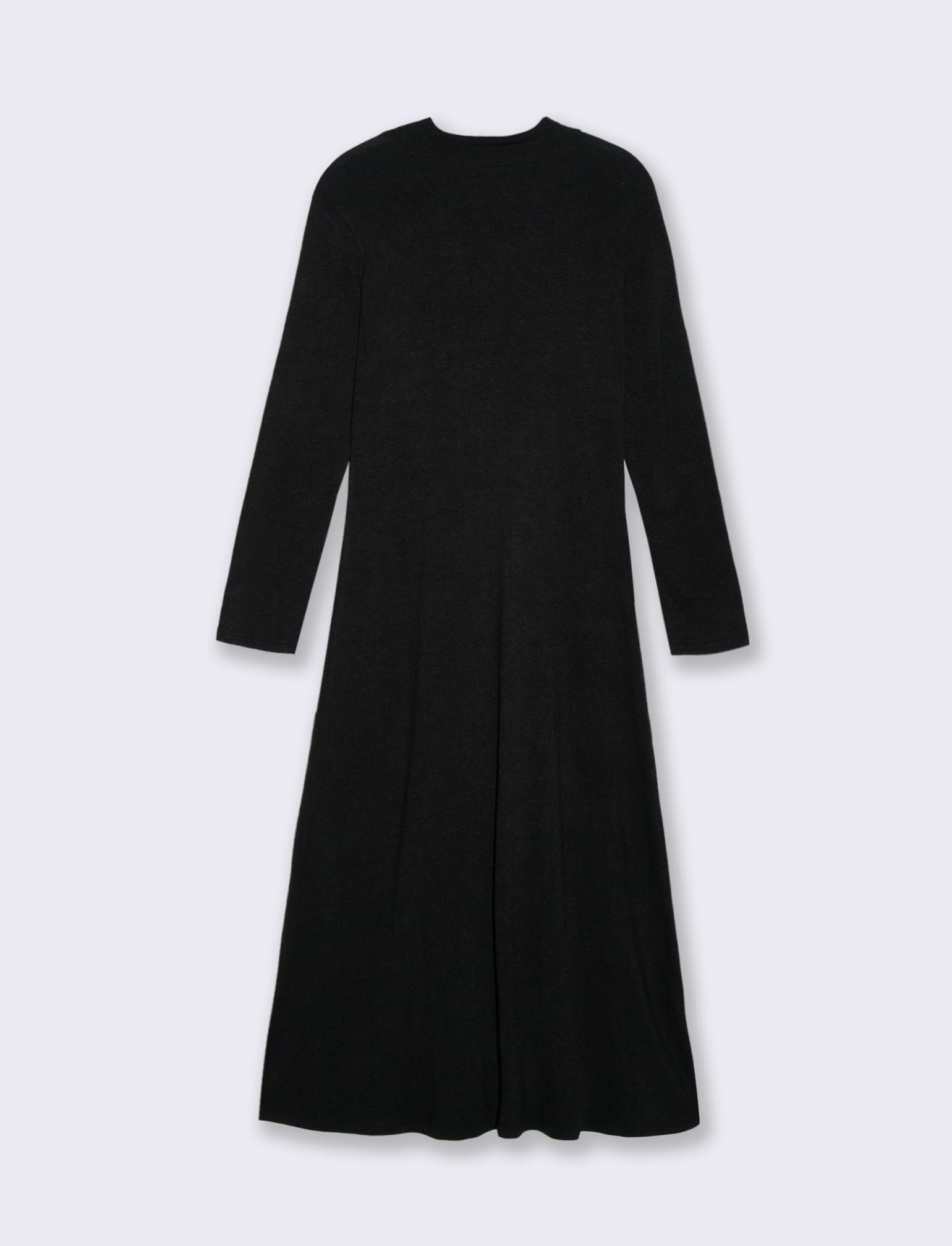 VESTITO LUNGO MANICA LUNGA CON MEZZOCOLLO SVASATO Il prodotto è di colore Nero