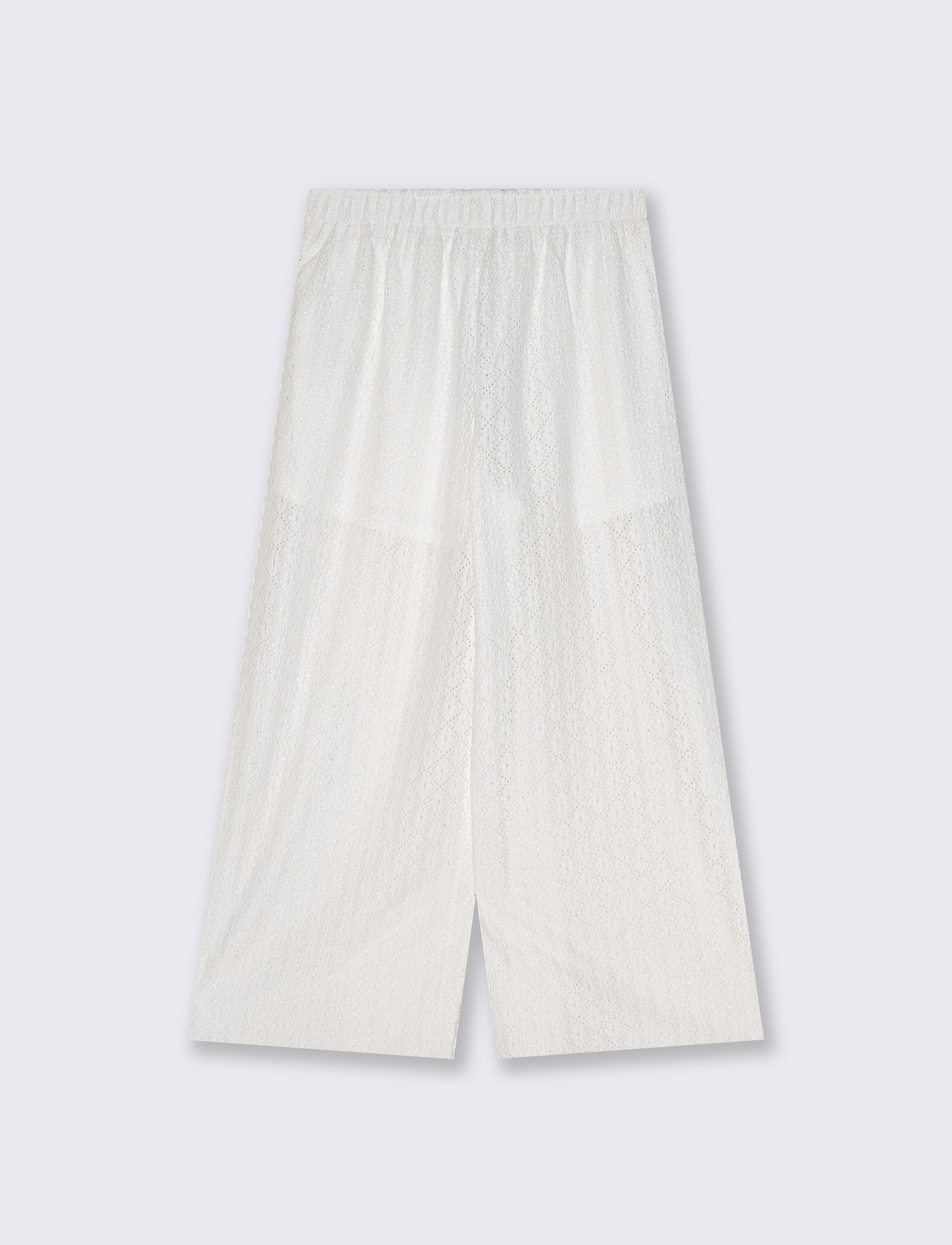 PANTALONE LUNGO, FODERATO, CON ELASTICO IN VITA E COULISSE REGOLABILE. VESTIBILITÀ MORBIDA. Il prodotto è di colore Bianco