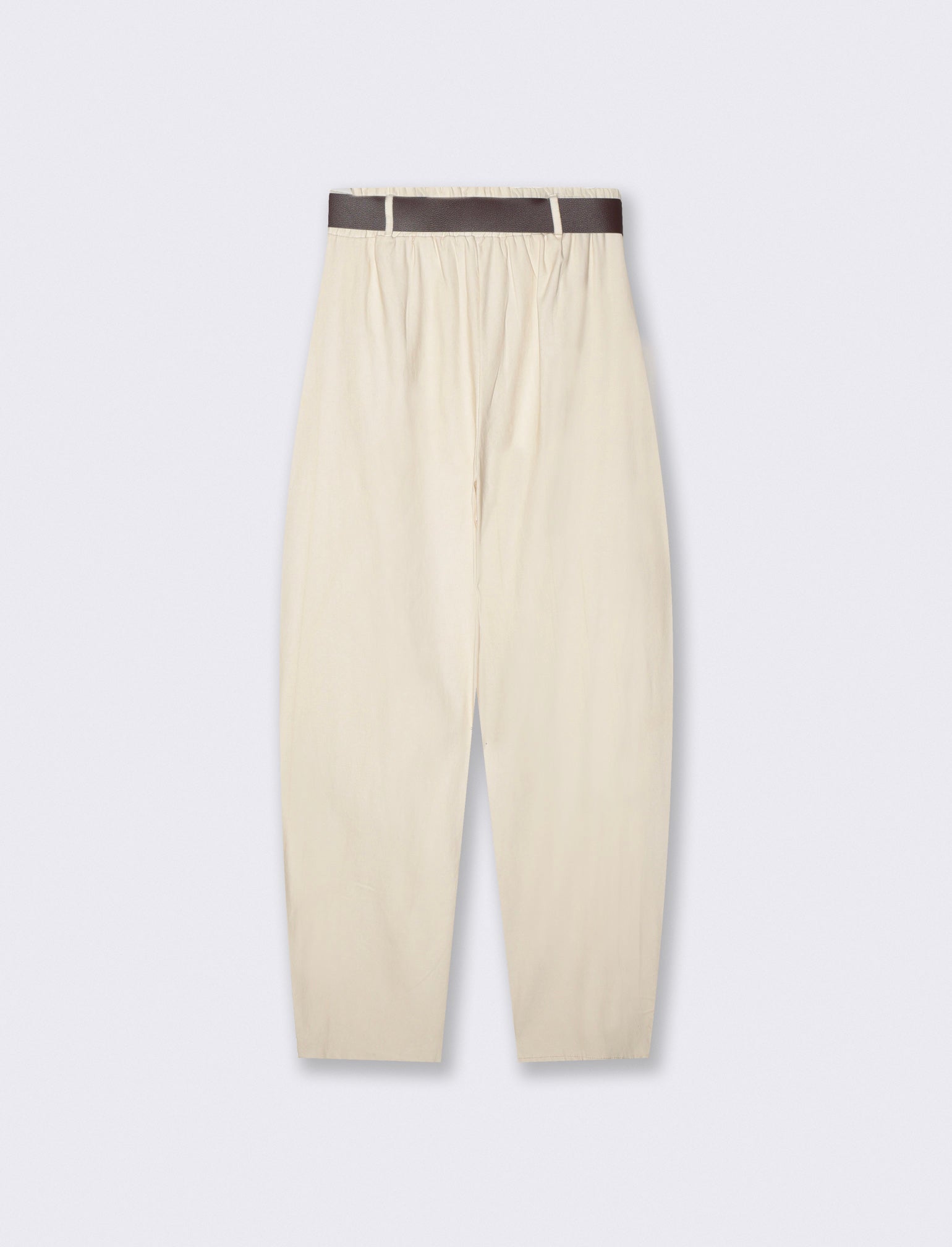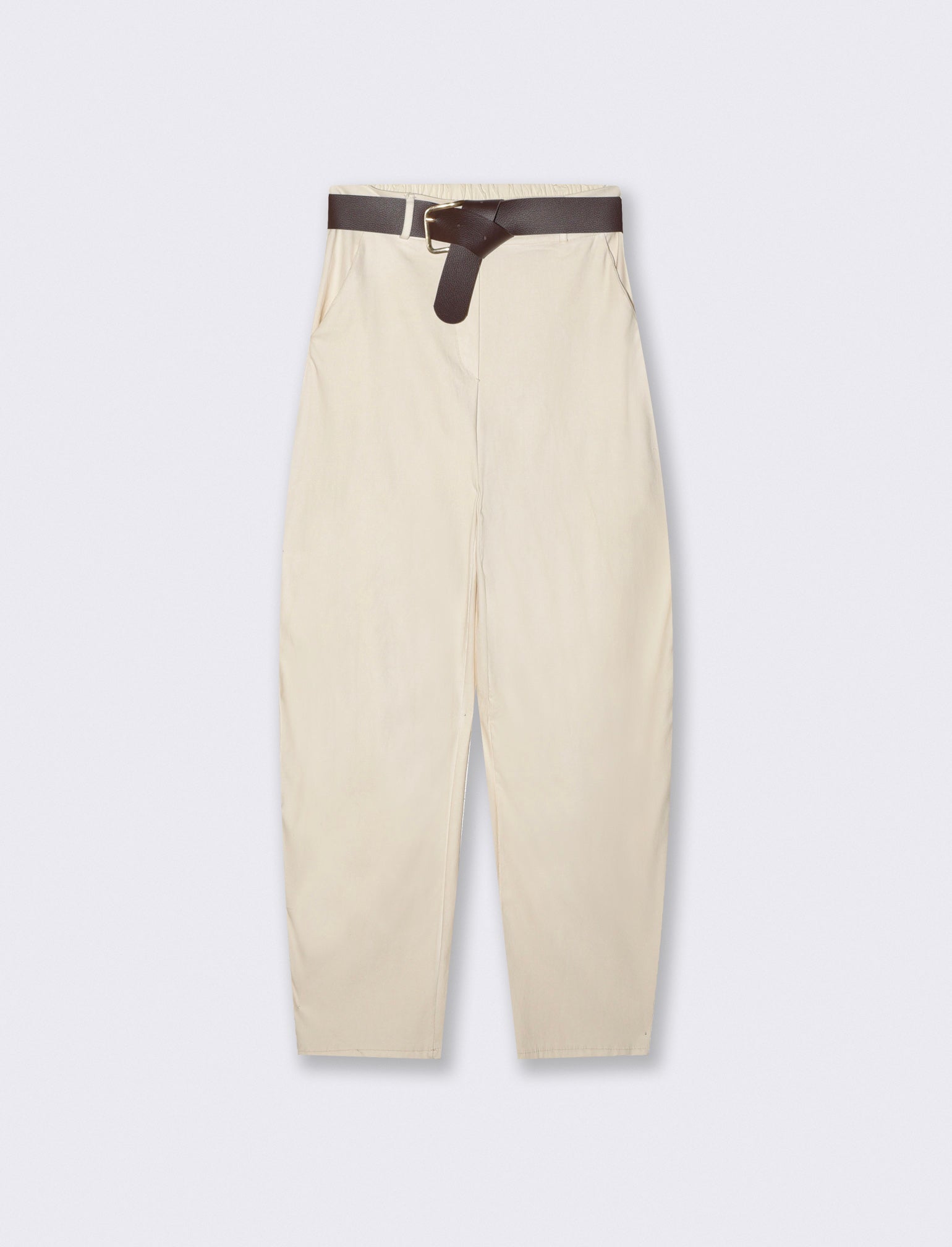 Pantaloni dritti con tasche lateerali e cintura. Il prodotto è di colore Bianco burro