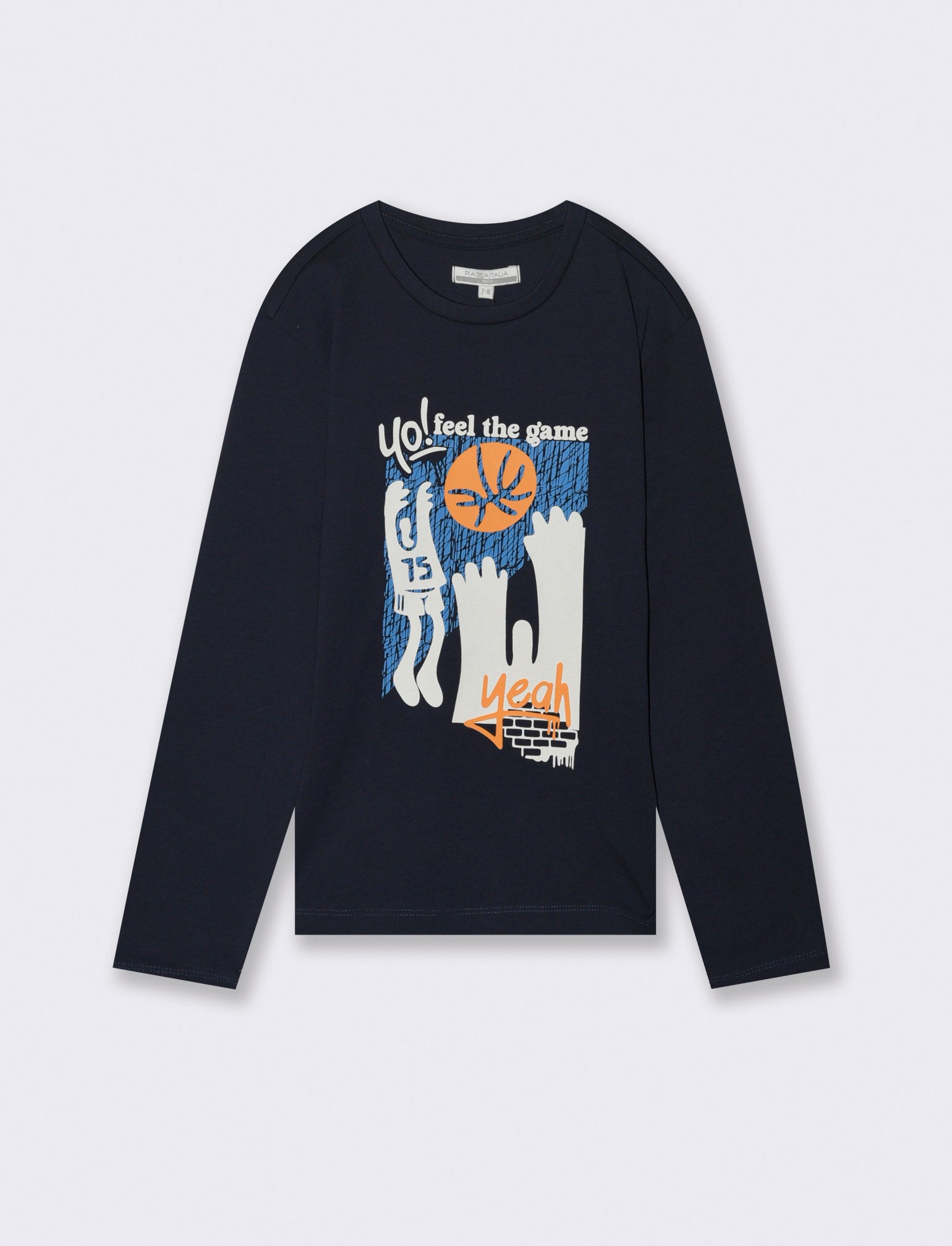 T-shirt in cotone basica con stampa frontale. Ideale per il tempo libero. Il prodotto è di colore Blu