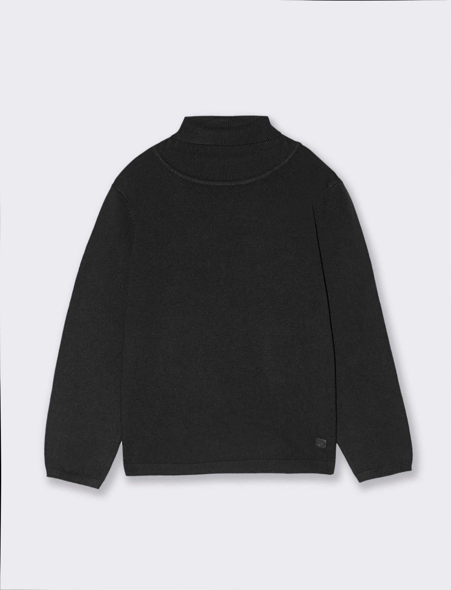 MAGLIA MODELLO COLLO ALTO TESSUTO VISCOSA NYLON, CON PLACCHETTA IN METTALLO APPLICATA AL FONDO, CAPO CALDO E CONFORTEVOLE PERFETTO PER UN LOOK INVERNALE. Il prodotto è di colore Nero