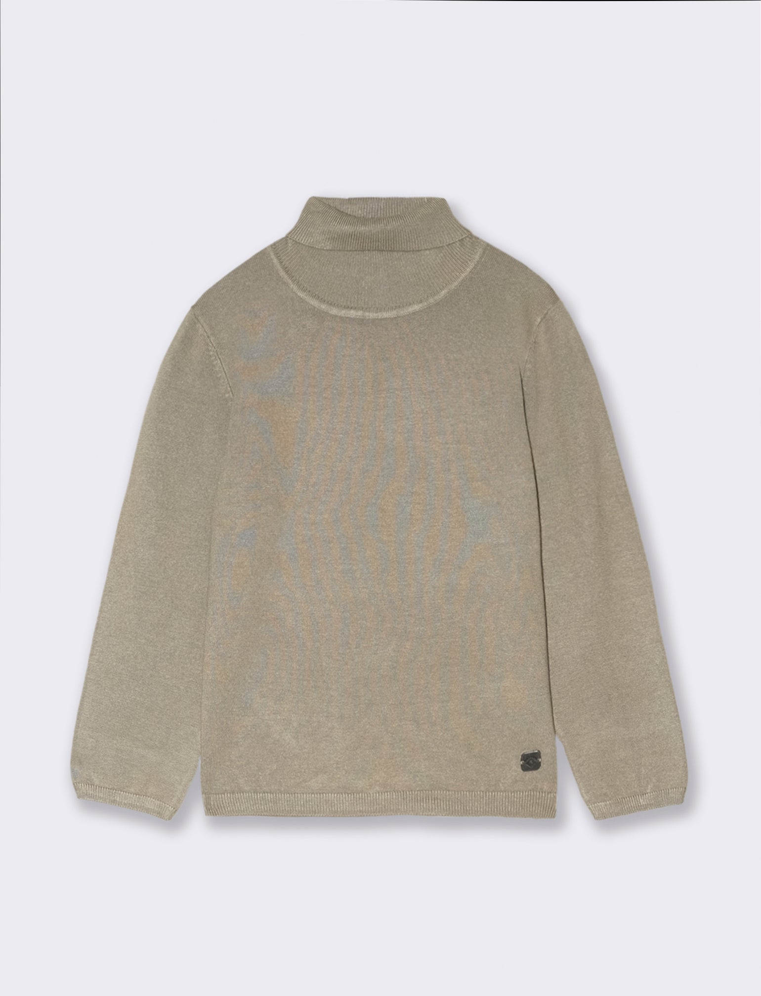 MAGLIA MODELLO COLLO ALTO TESSUTO VISCOSA NYLON, CON PLACCHETTA IN METTALLO APPLICATA AL FONDO, CAPO CALDO E CONFORTEVOLE PERFETTO PER UN LOOK INVERNALE. Il prodotto è di colore Verde