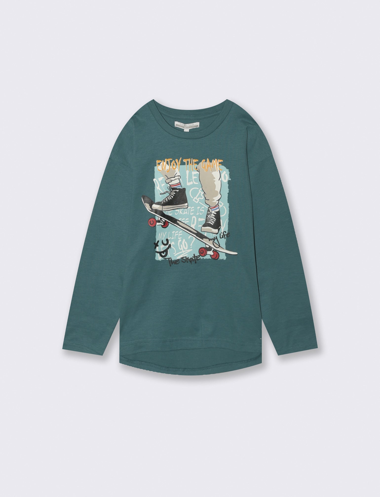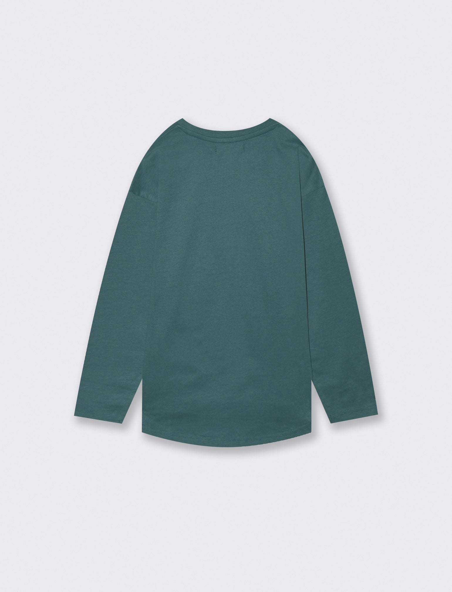 Maglia a maniche lunghe in morbido jersey di cotone. Bordo a costine sullo scollo. Il capo presenta una stampa frontale in stile street. Disponibile in diversi colori. Vestibilità loose, utilizzabile in qualsiasi occasione. Il prodotto è di colore Verde