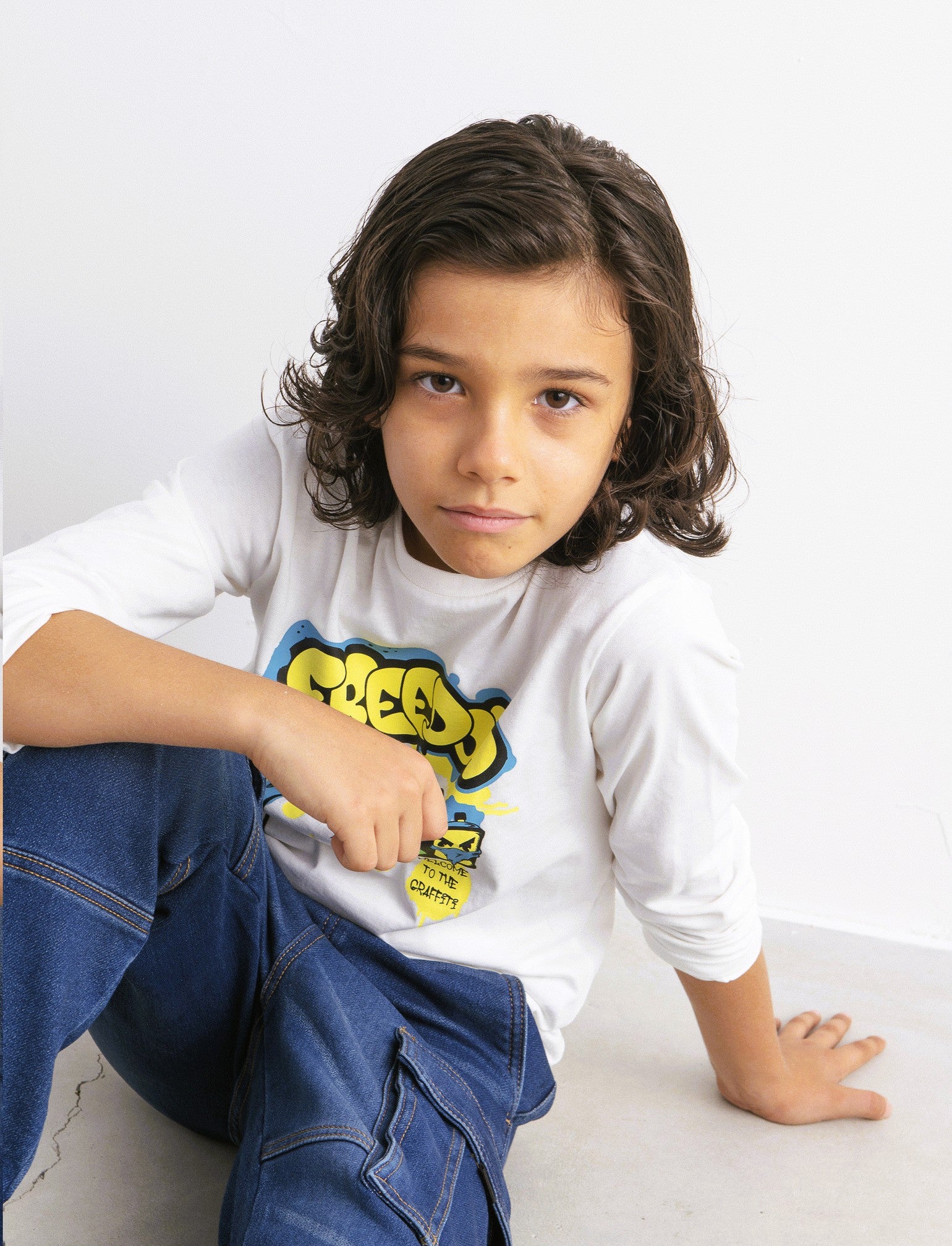 T-shirt girocollo a manica lunga in cotone. Il capo presenta stampa sul davanti. Disponibile in diversi colori. Vestibilità regular, confortevole e ideale per chi ama lo stile street. Il prodotto è di colore Bianco sporco