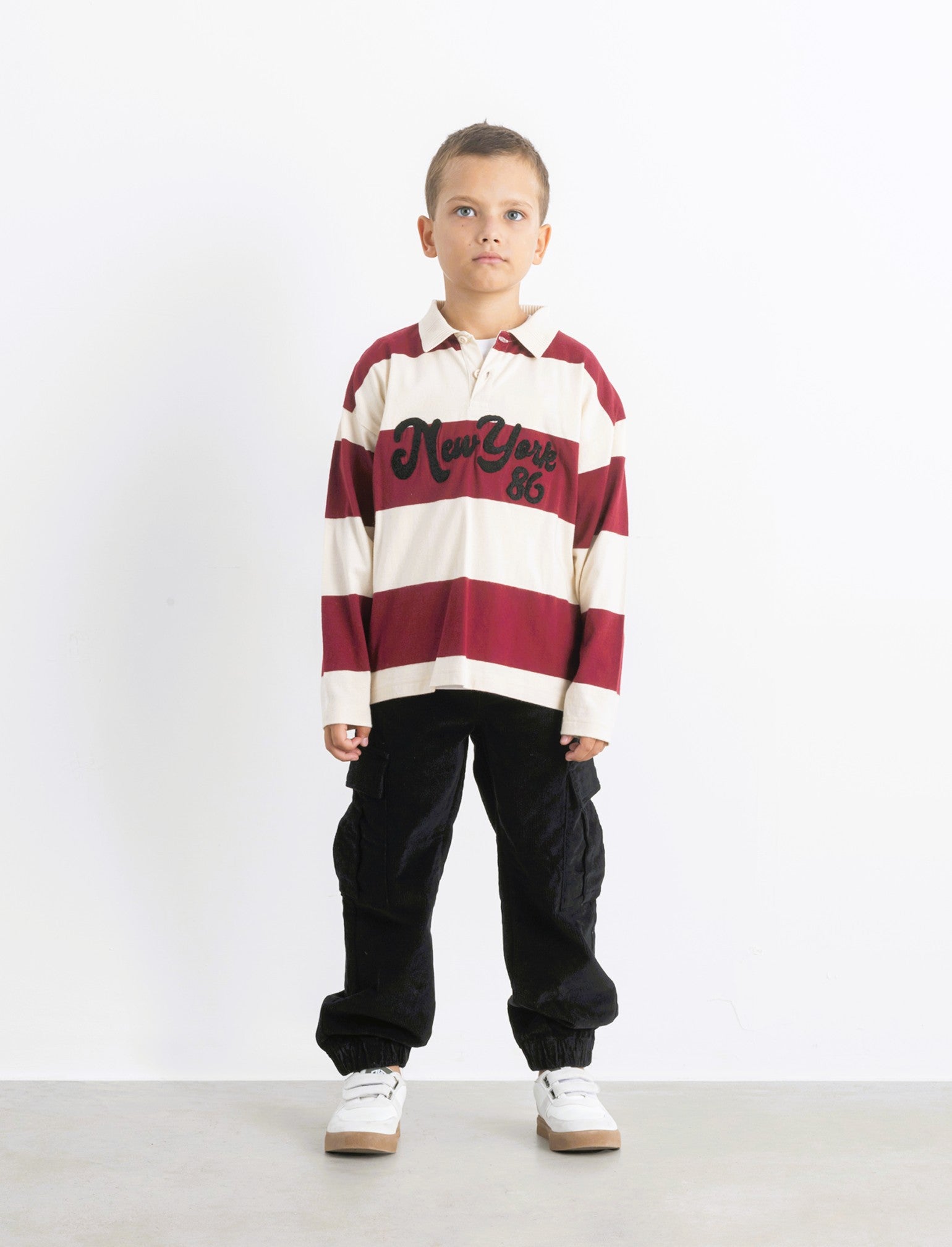 Maglietta polo in cotone a righe con maniche lunghe, collo in costine con chiusura bottoncini. Il capo presenta un ricamo frontale. Vestibilità regular. Per uno stile casual e dinamico. Il prodotto è di colore Beige