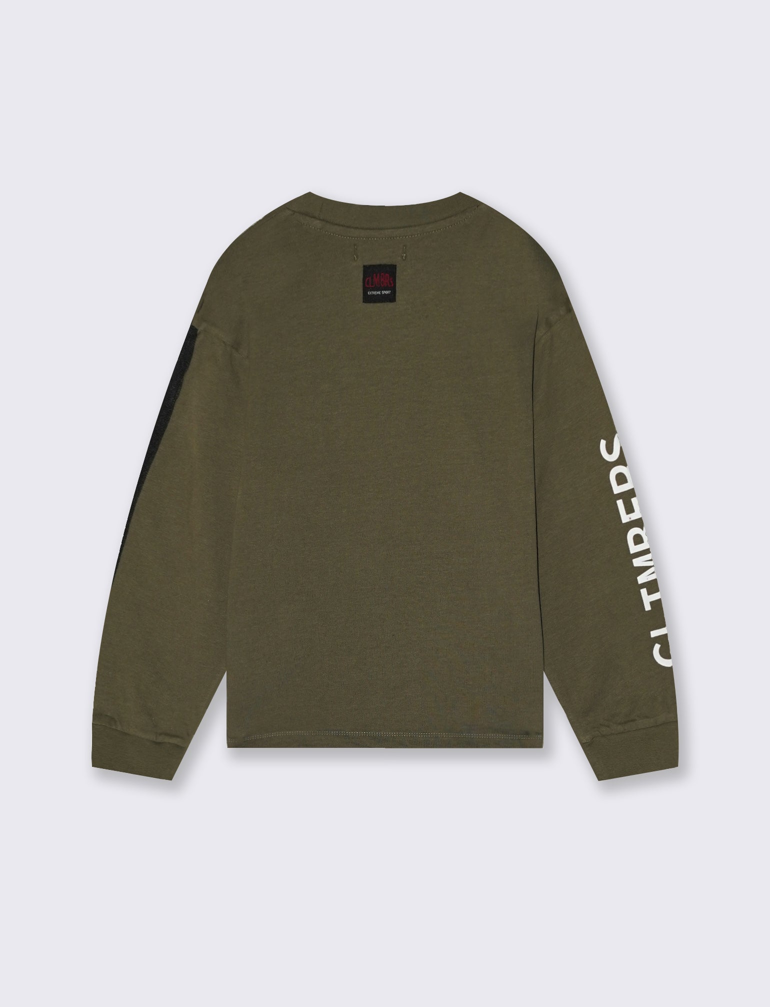 T-SHIRT in cotone mano calda maniche lunghe con polsino in costina, ricamo punto spugna e stampa davanti. Etichetta dietro, modello girocollo adatta al tempo libero. Il prodotto è di colore Verde militare