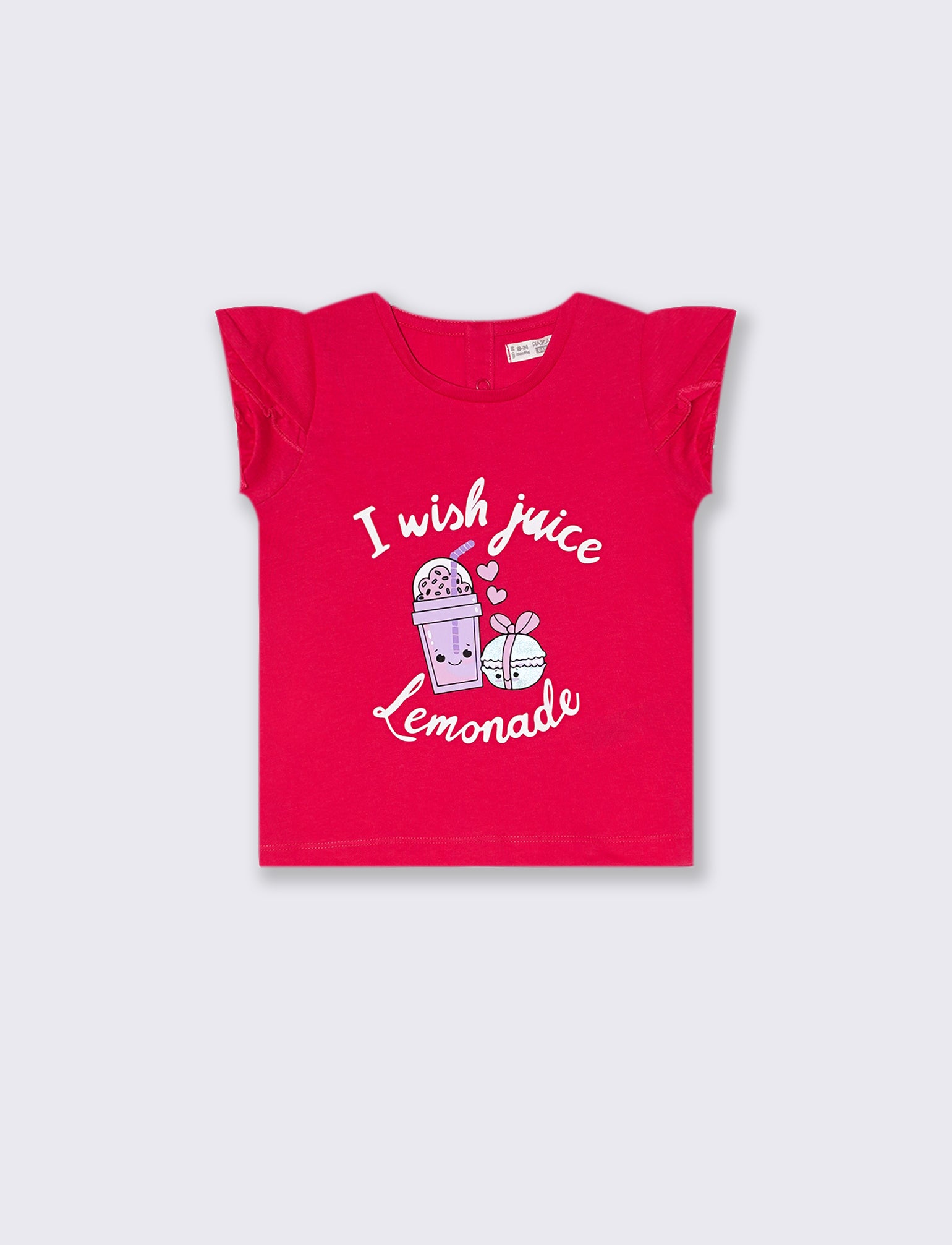 T-shirt in morbido jersey, caratterizzata da un elegante girocollo e delicate rouches alle maniche, perfetta per le piccole fashioniste. La stampa frontale vivace aggiunge un tocco di allegria e originalità, rendendo questo capo ideale per outfit quotidiani. Comoda e versatile, si presta a molteplici abbinamenti, dal look casual a quello più ricercato, assicurando sempre il massimo comfort per la tua neonata. Un must-have nel guardaroba! Il prodotto è di colore Fuxia