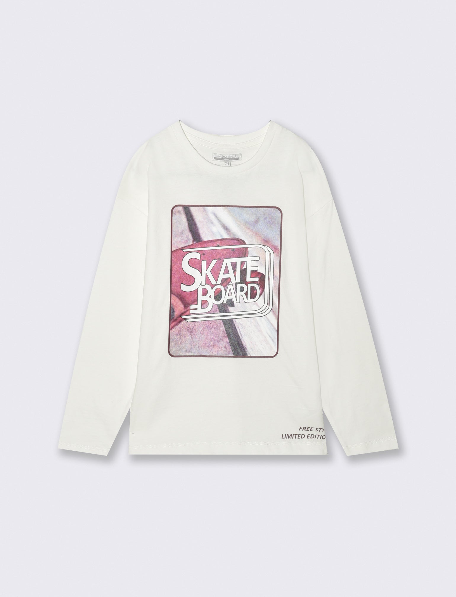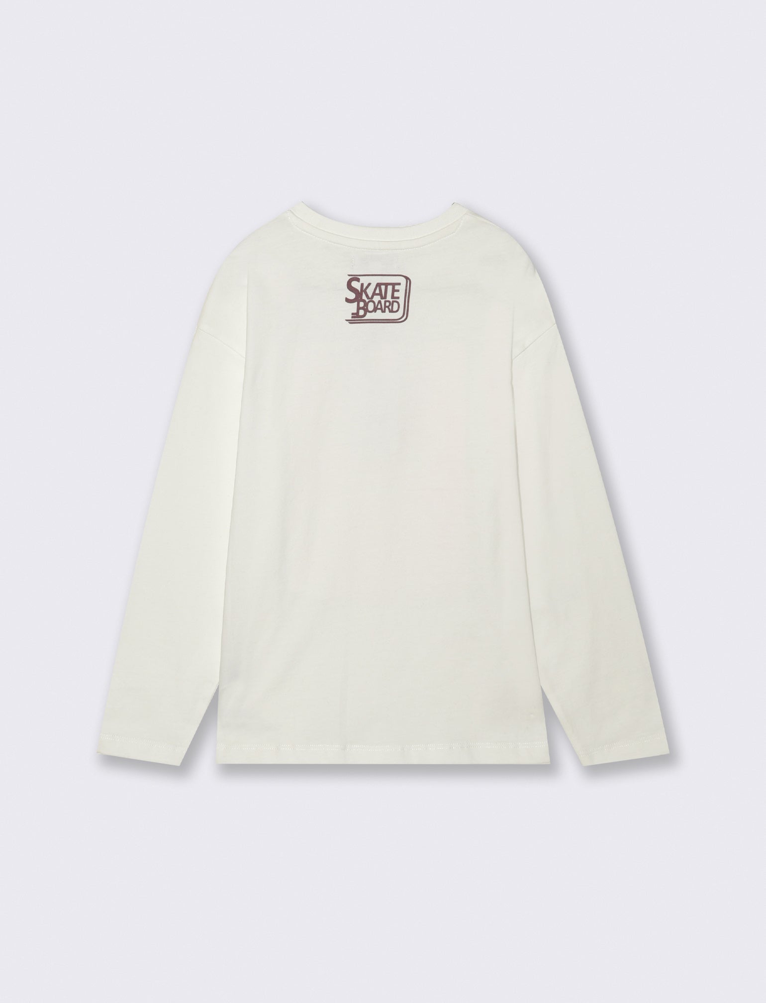 T-SHIRT in cotone mano calda maniche lunghe con stampa davanti e dietro , modello girocollo over size adatta al tempo libero. Il prodotto è di colore Bianco latte