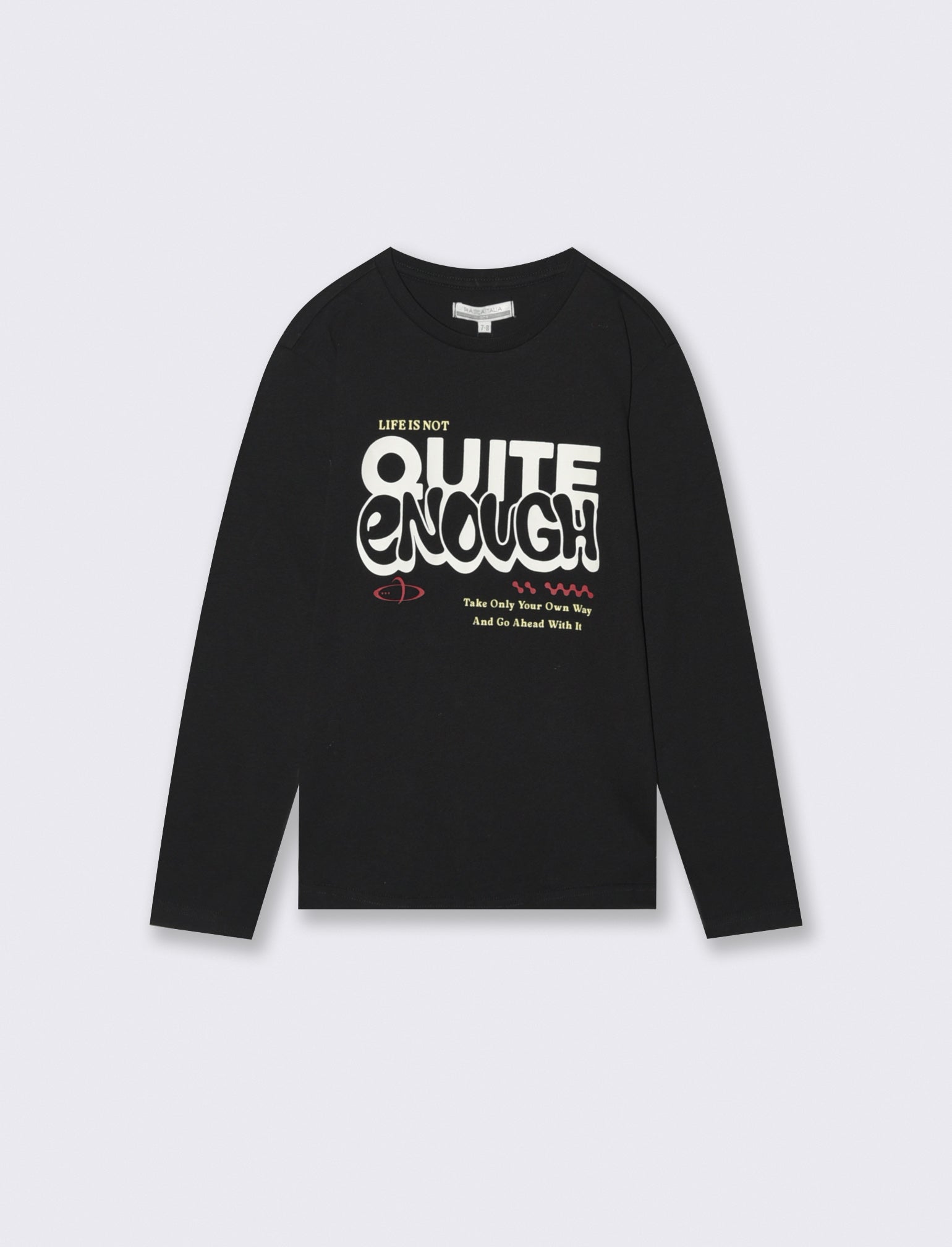 T-SHIRT in cotone mano calda maniche lunghe con stampa davanti, modello girocollo adatta al tempo libero. Disponibile in 3 varianti. Il prodotto è di colore Nero