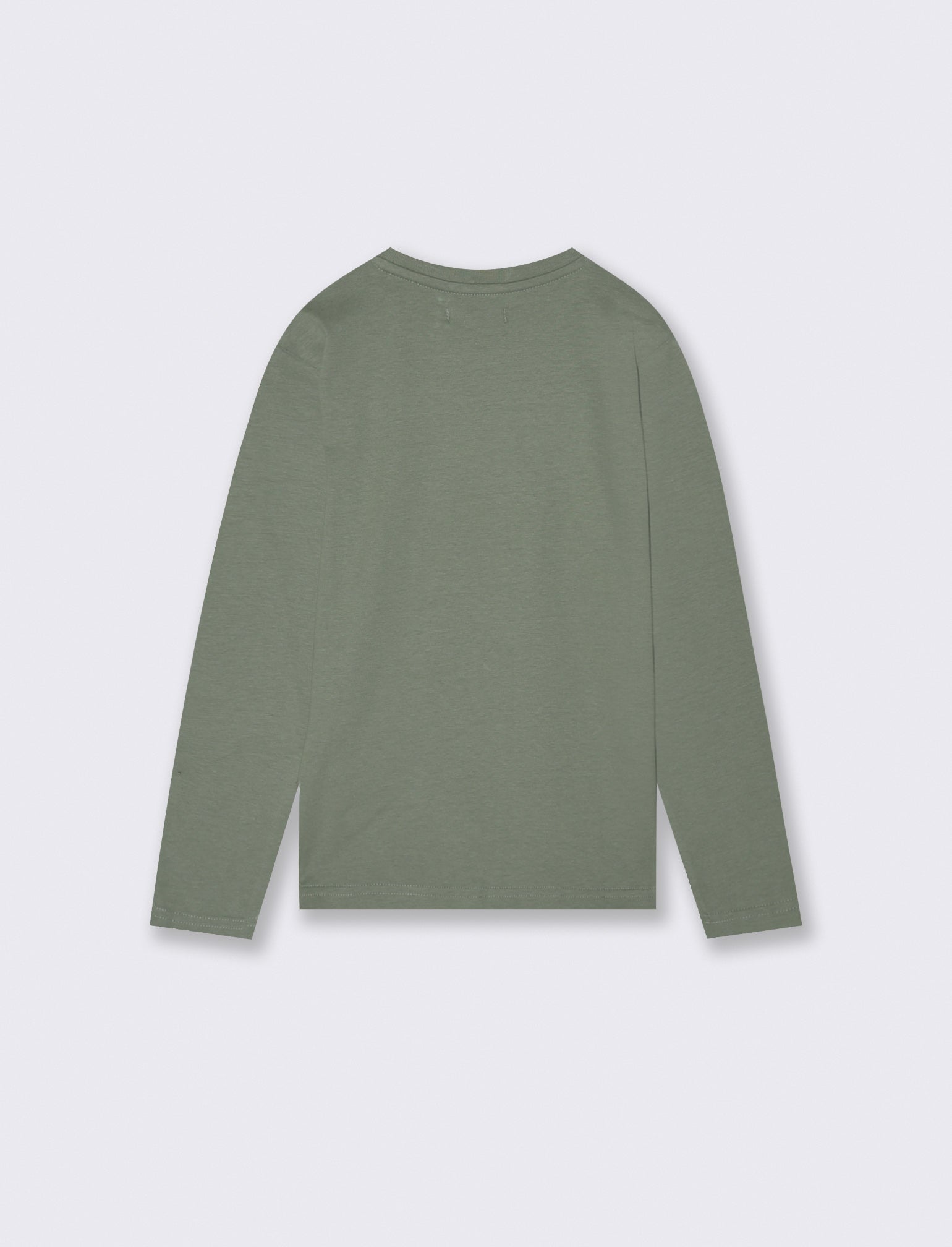 T-SHIRT in cotone mano calda maniche lunghe con stampa davanti, modello girocollo adatta al tempo libero. Disponibile in 3 varianti. Il prodotto è di colore Verde salvia