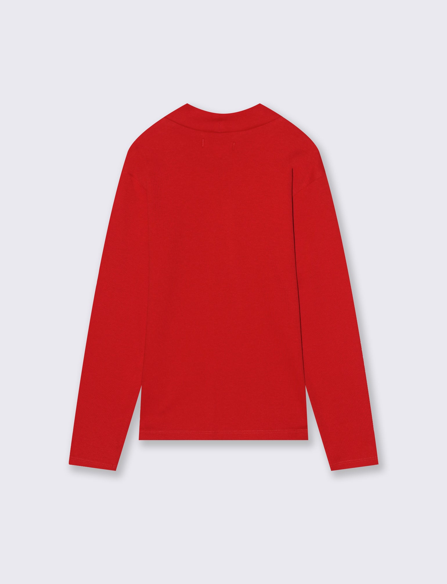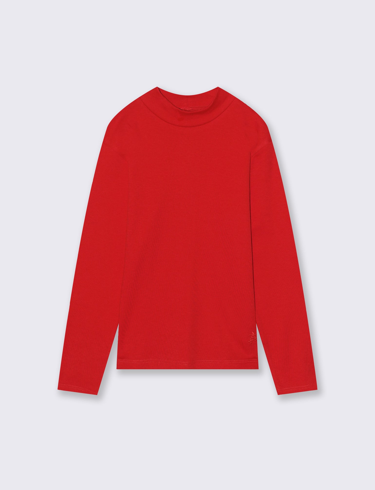 T-shirt in caldo cotone mezzo collo , maniche lunghe. Ricamo in tono frontale. Ideale per i giorni più freddi. Il prodotto è di colore Rosso