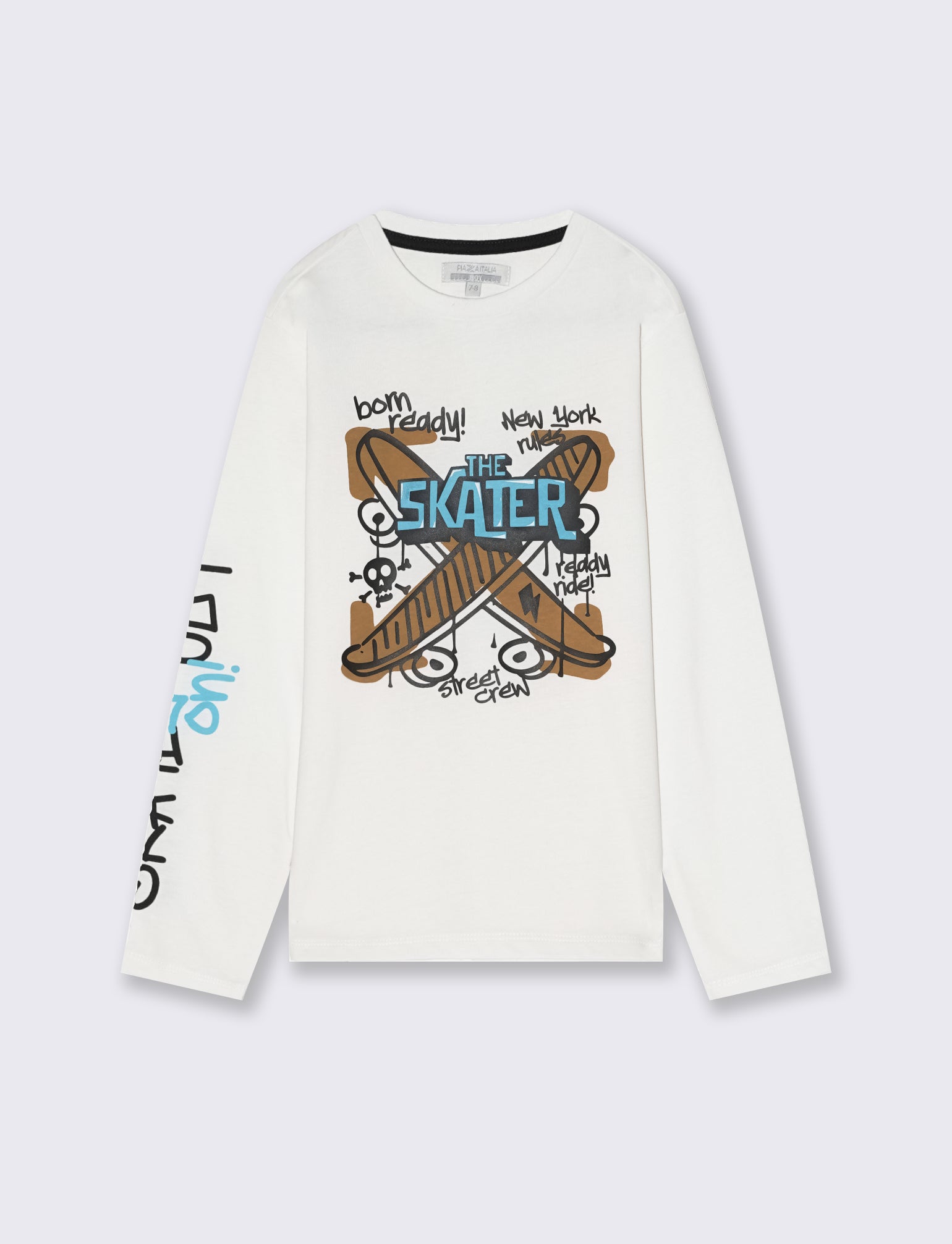 T- shirt in jersey peach manica lunga. Scollo e fondo manica in costina. Stampa frontale e sulla manica. Ideale per il tempo libero. Il prodotto è di colore Bianco latte