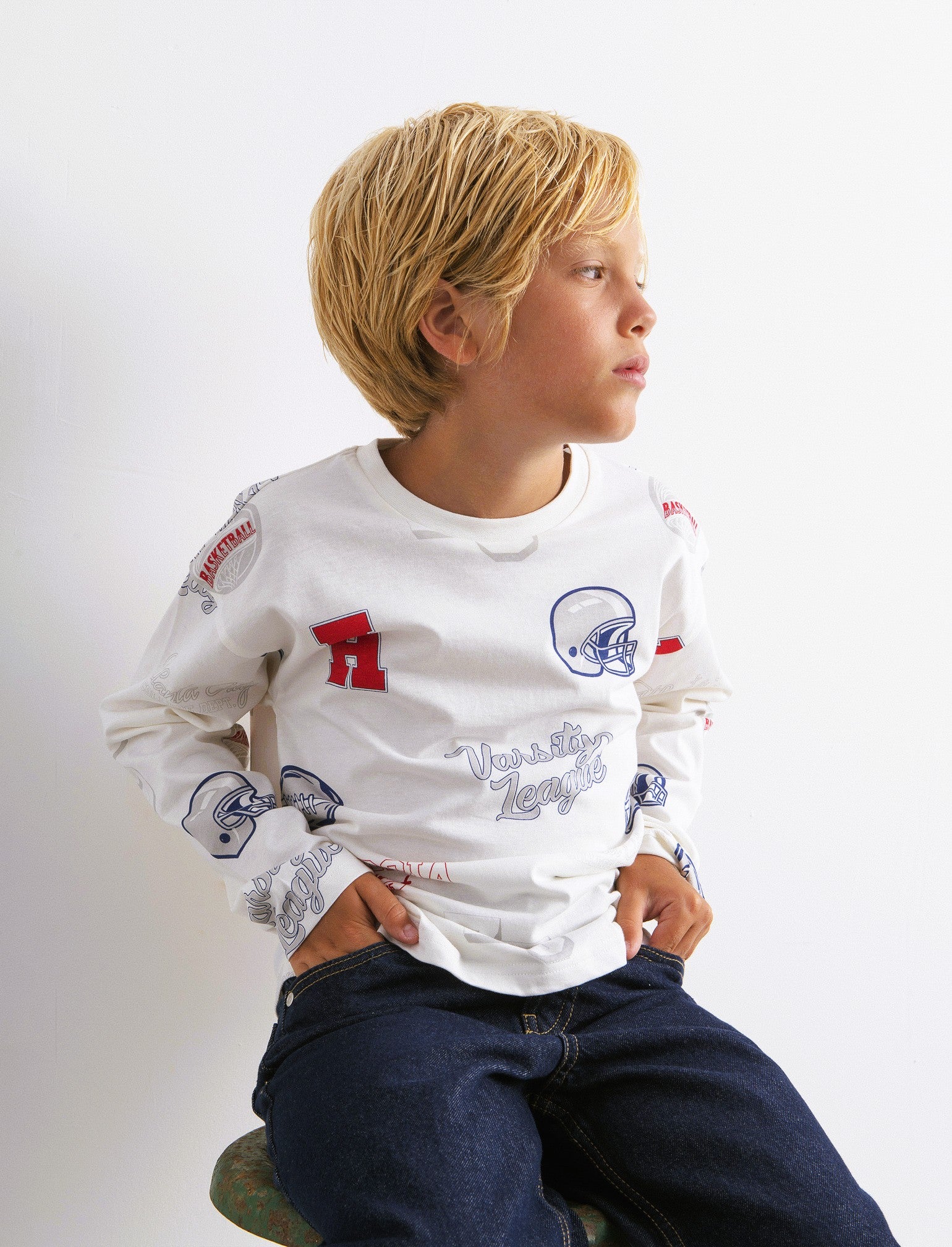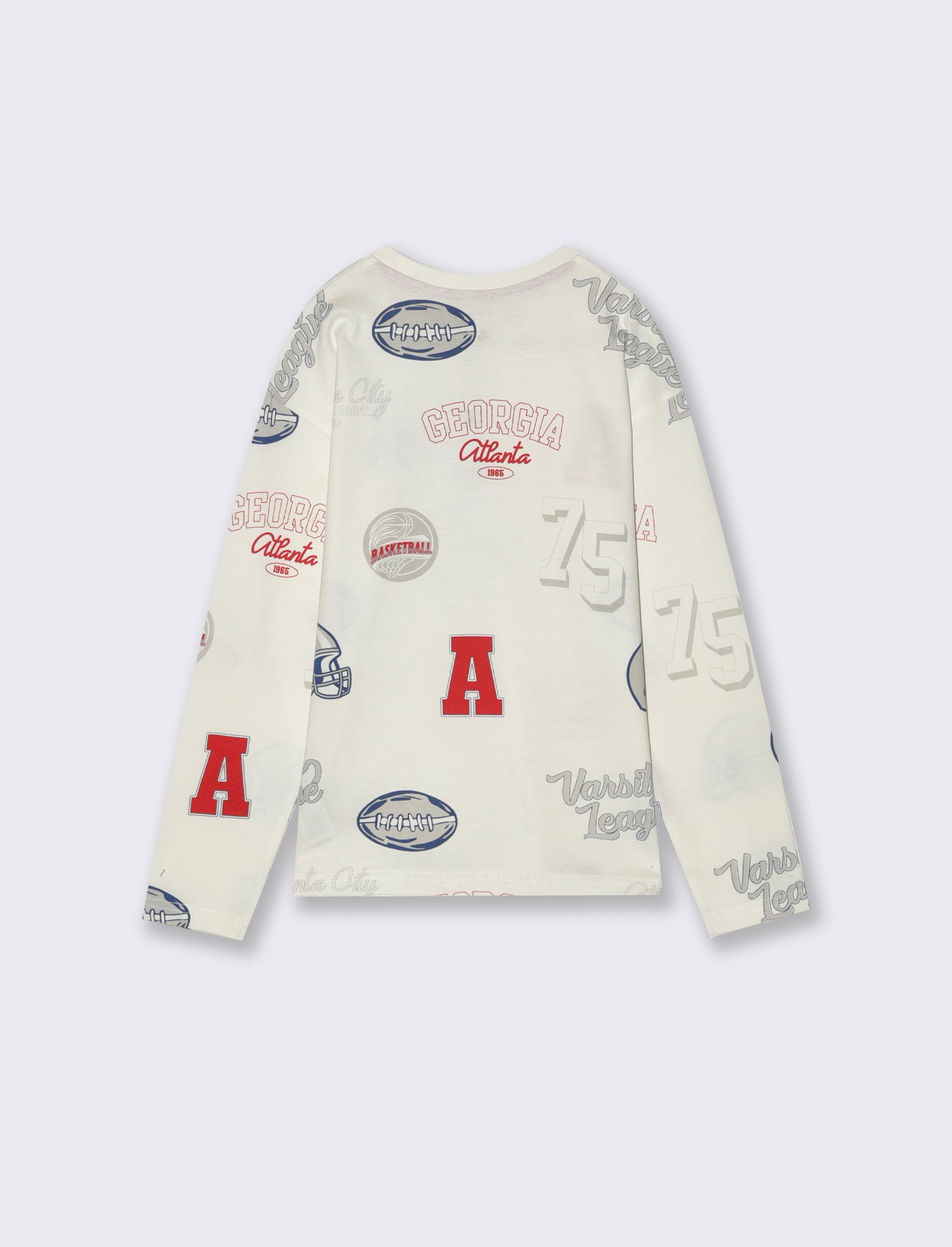 T-shirt in jersey stampa icone college. Modello loose per uno stile varsity. Il prodotto è di colore Fantasia