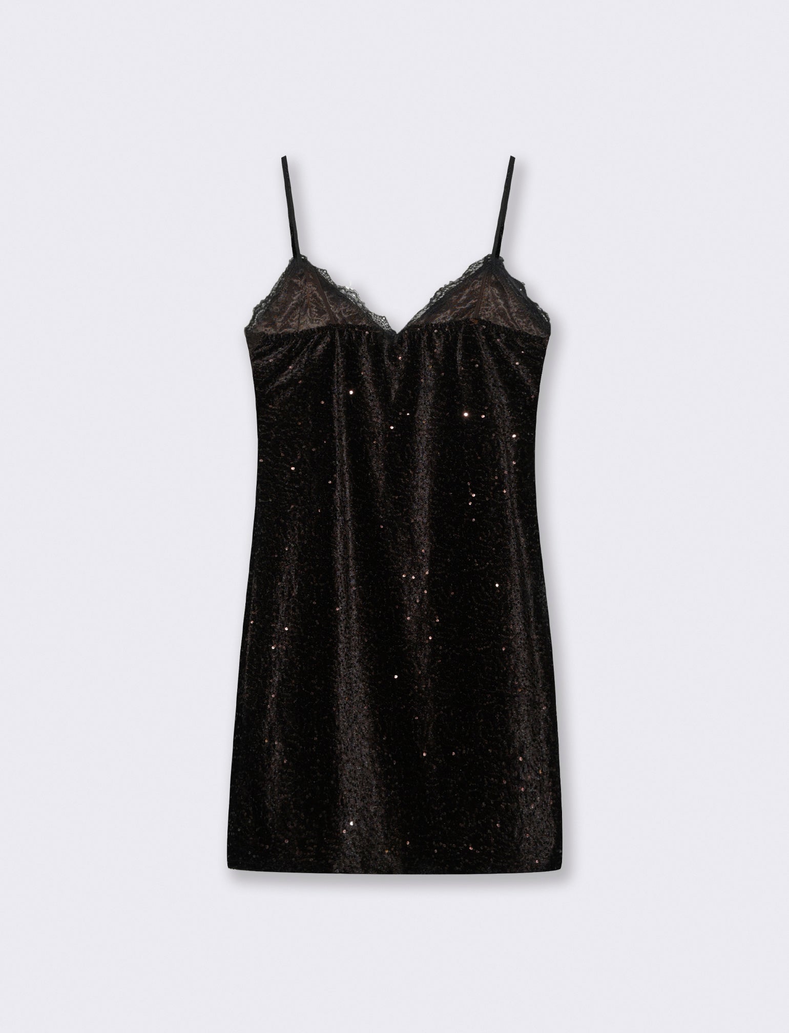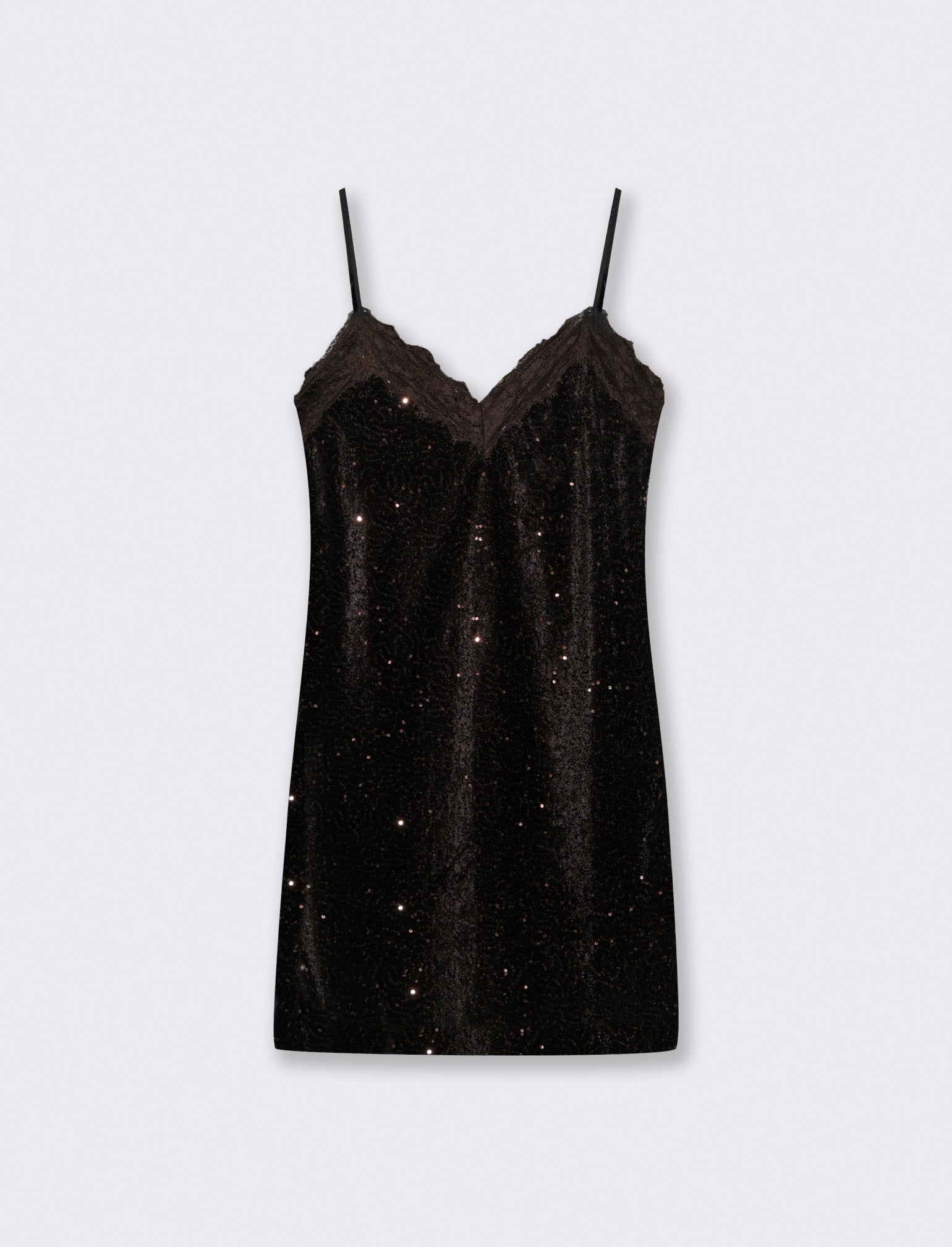Vestito in paillettes e pizzo Il prodotto è di colore Moro