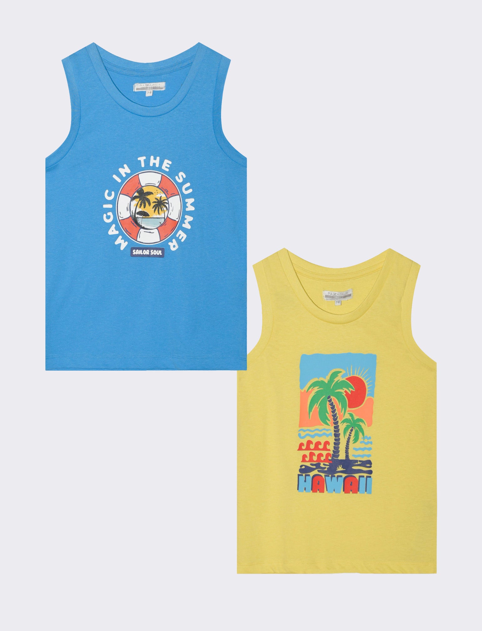 Set canotta in cotone con stampa frontale con scollo e giromanica in costina.Ideale per il tempo libero. Il prodotto è di colore Giallo