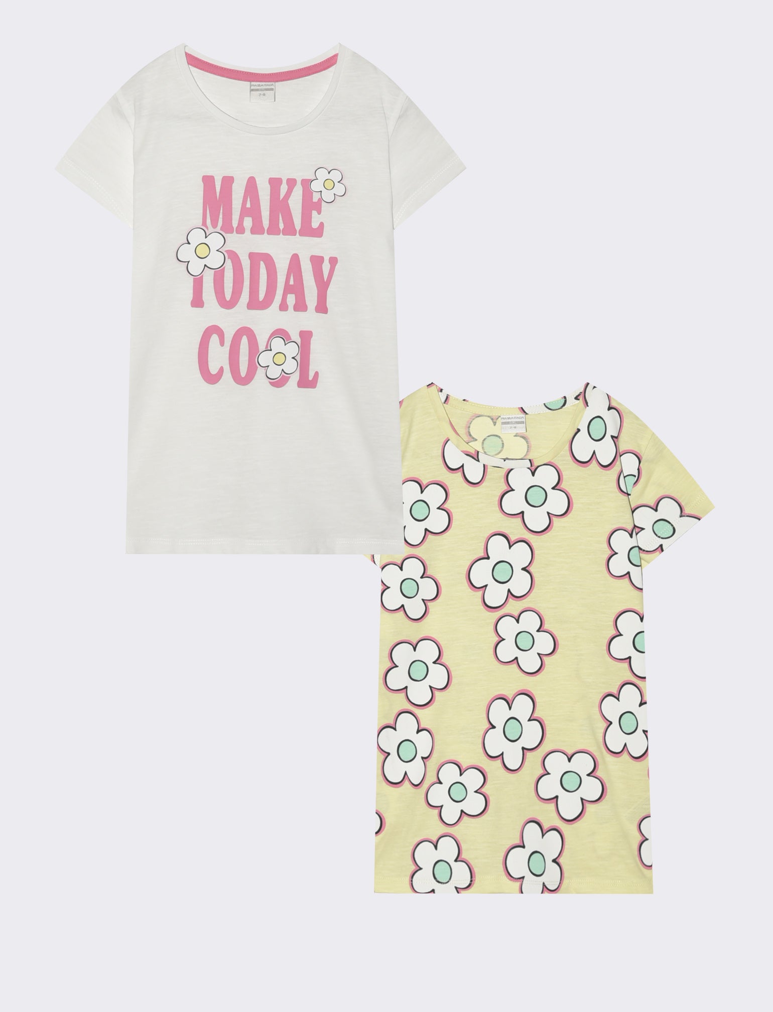 2 pack T-shirt mezza manica 100% cotone, tinta unita e stampata, dalla vestibilità regular, comoda e pratica Il prodotto è di colore Giallo