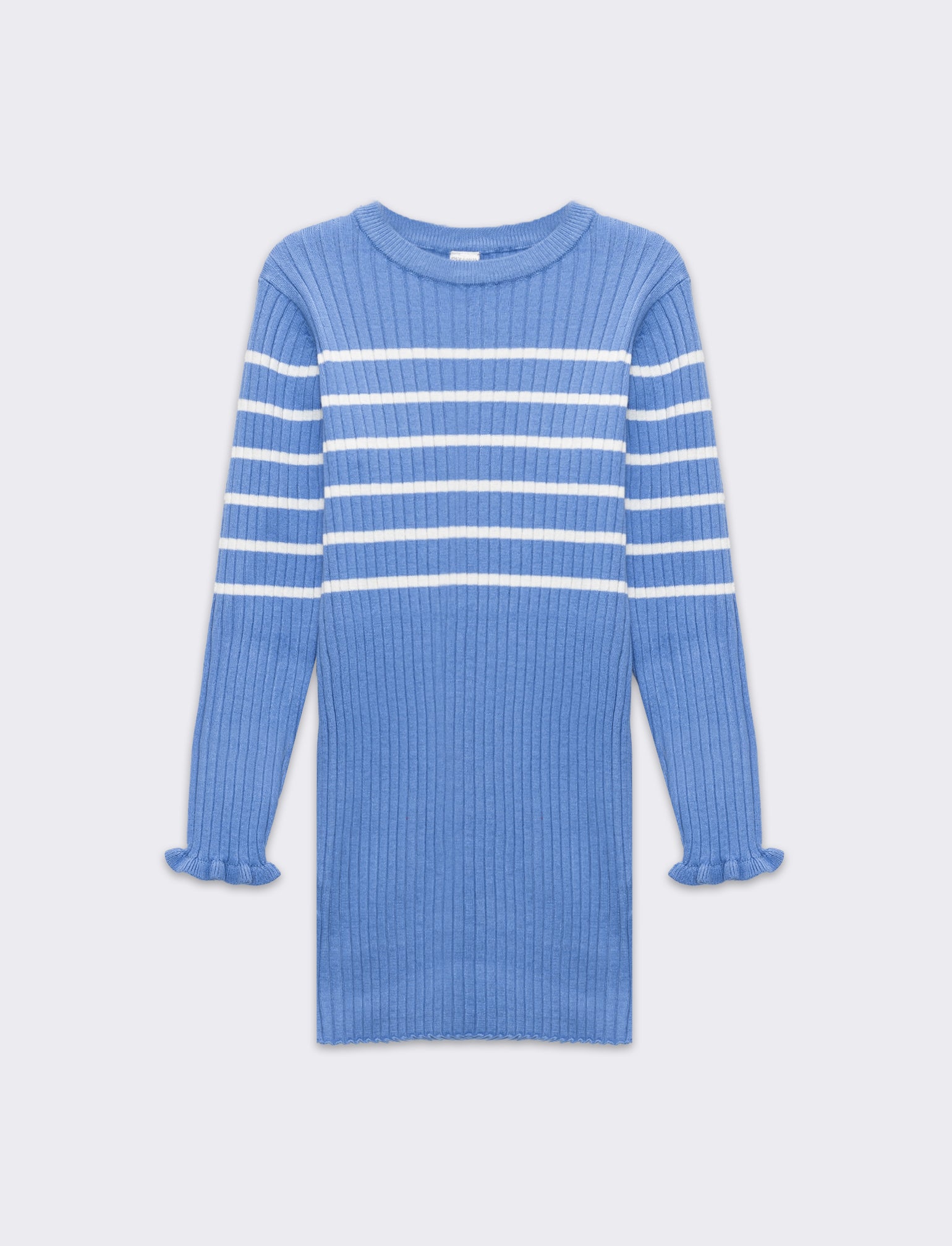 Questo abito a righe è realizzato in morbida maglina di poliviscosa, perfetta per garantire comfort e libertà di movimento a una bambina. La vestibilità aderente esalta la silhouette, mentre il girocollo conferisce un tocco di eleganza. Le rouches al fondo manica aggiungono un elemento giocoso e femminile, rendendo questo capo ideale per occasioni speciali o per un look quotidiano. Un must-have per il guardaroba di ogni piccola fashionista. Il prodotto è di colore Azzurro