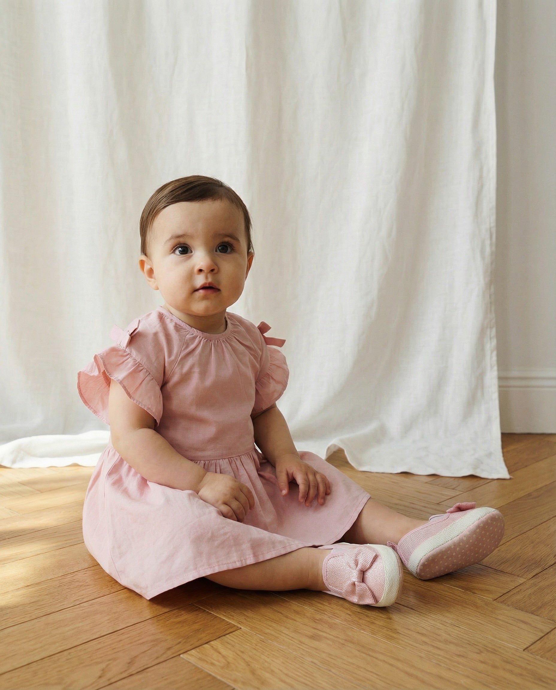 Abito ampio, con manica raglan e rouches, fiocchi applicati e stile romanticonti e di tendenza Il prodotto è di colore Rosa