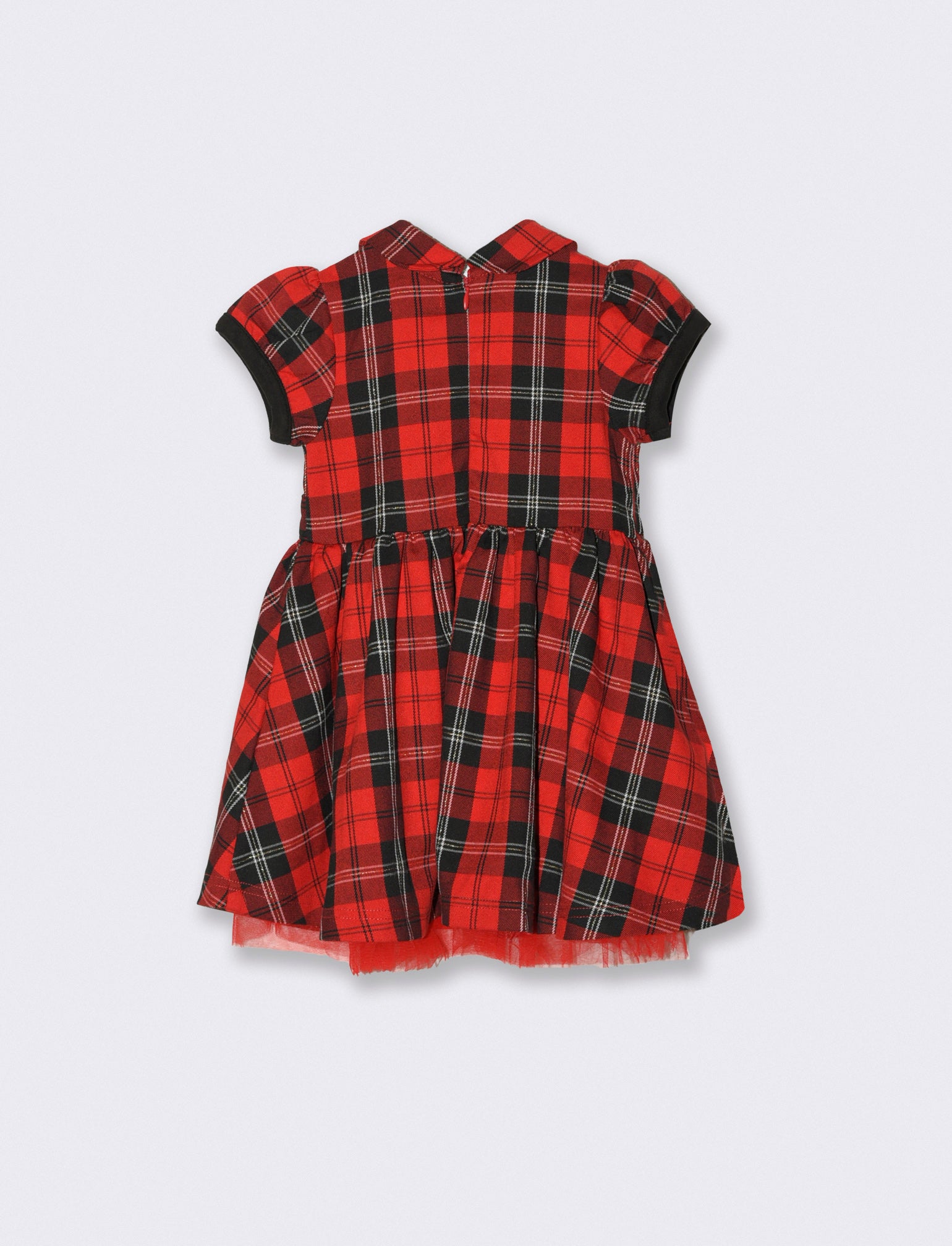 Abito dal tessuto a quadri, natalizio, con inserti in ciniglia.Ideale per le serate di festa. Il prodotto è di colore Rosso