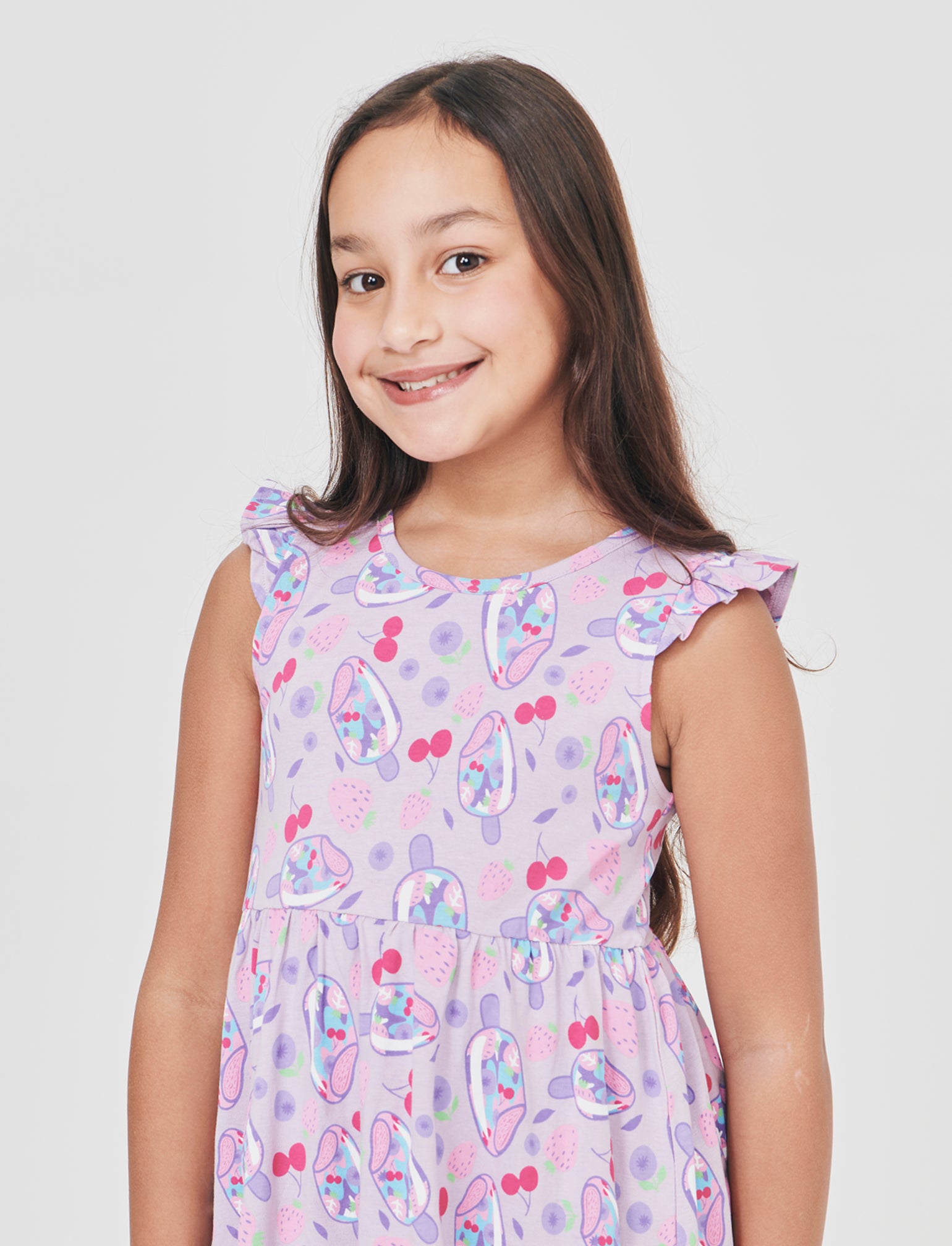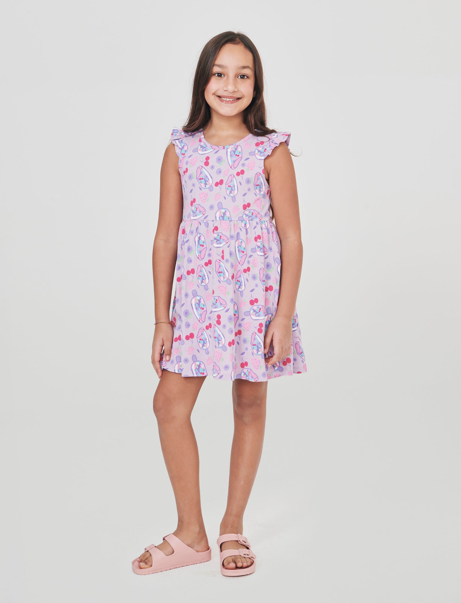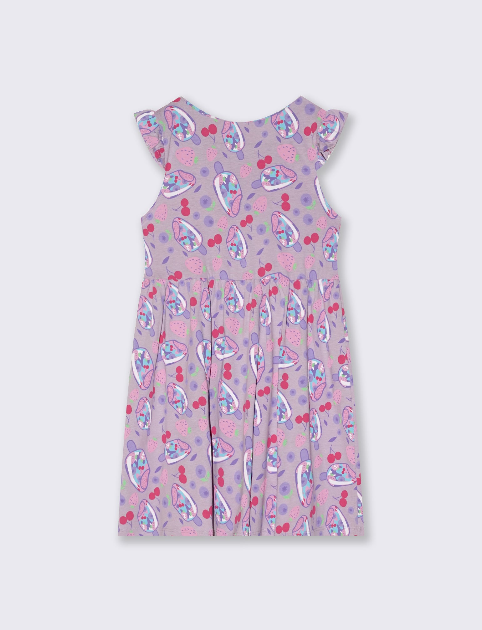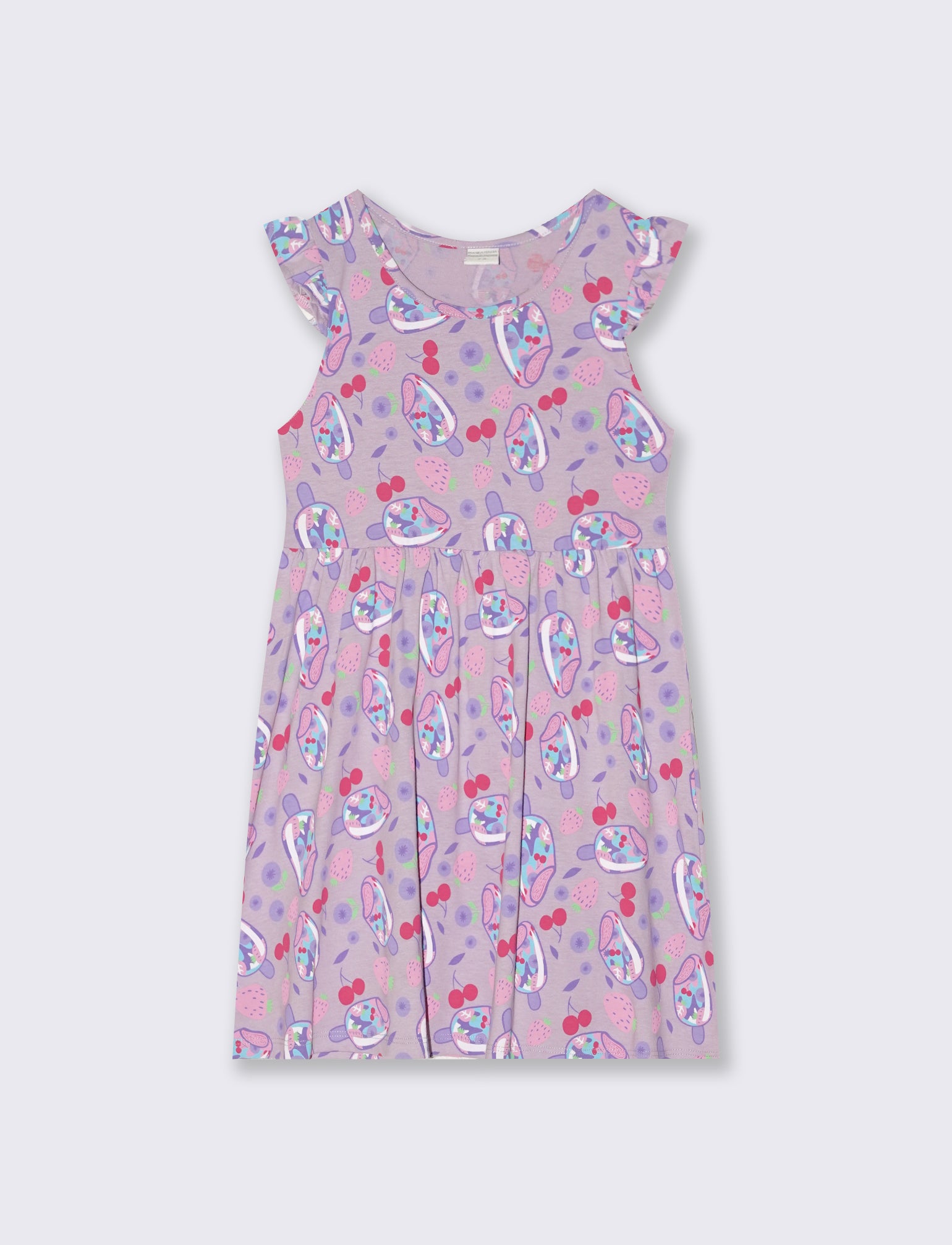 Abito con stampe e giromanica con volant Il prodotto è di colore Lilla
