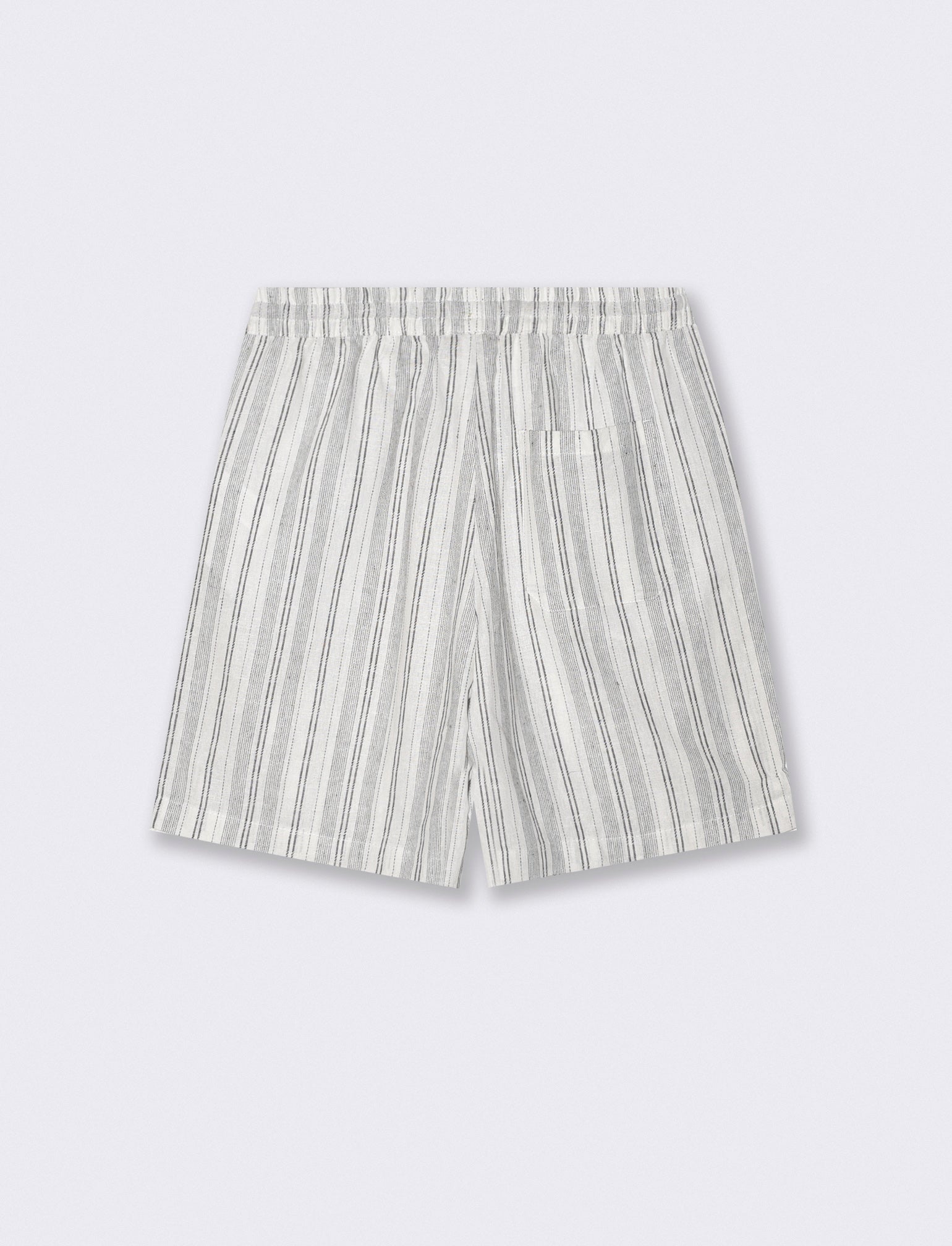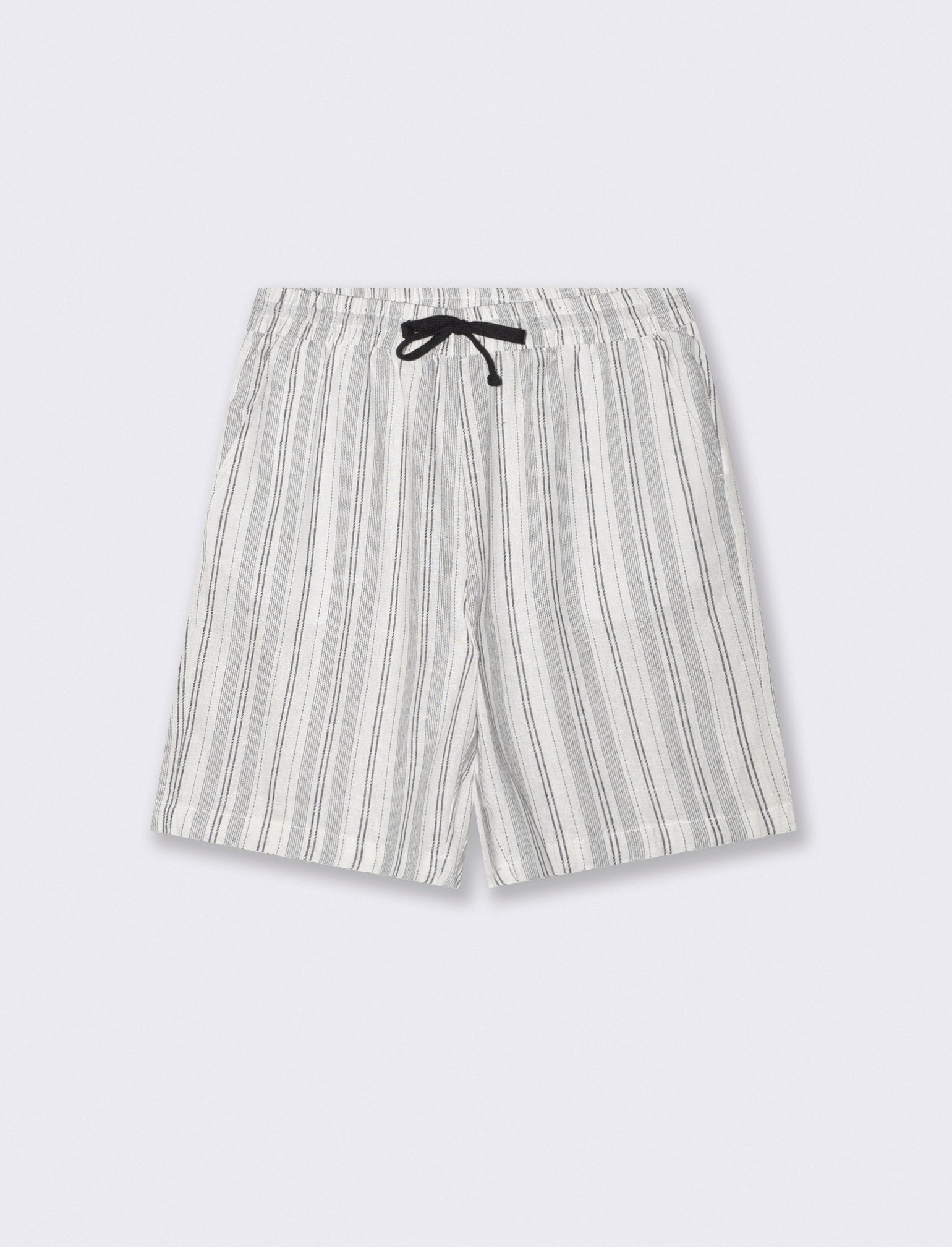 Bermuda da set regular fit in tessuto misto lino. Fantasia a righe. Vita elasticizzata regolabile con laccio. Tasche anteriori e dettaglio di tasca a toppa posteriore. Il prodotto è di colore Bianco