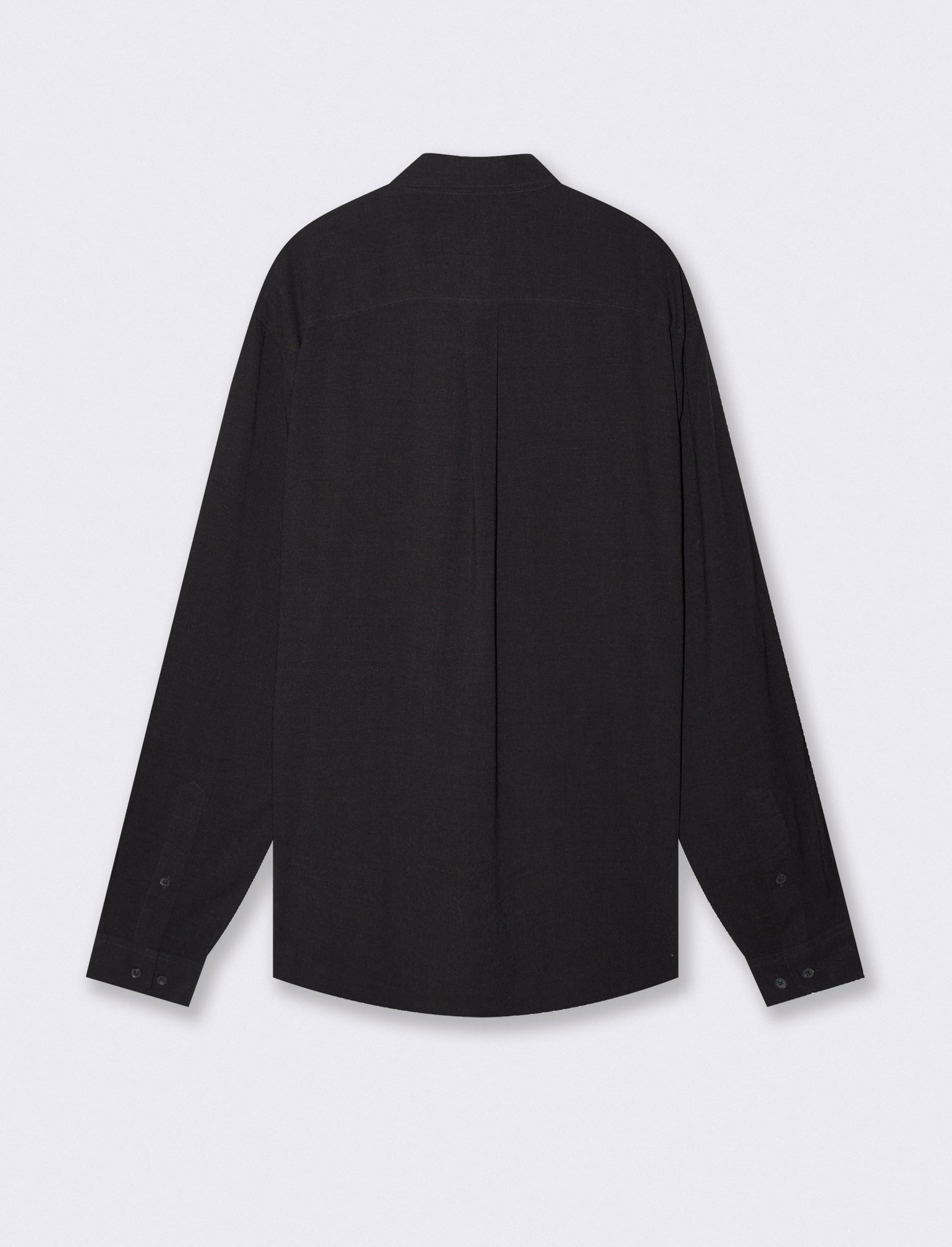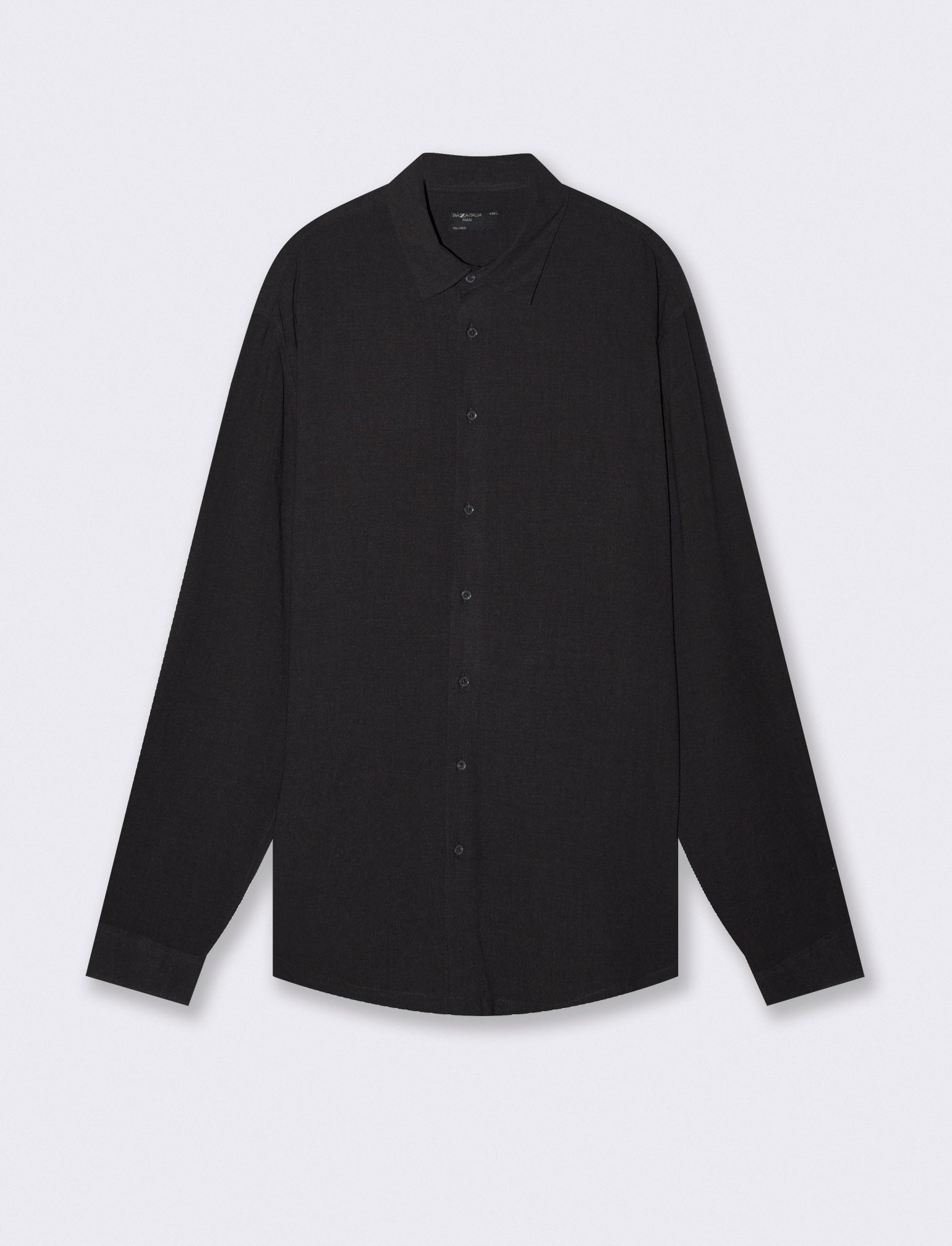 Camicia leggera soft cropped fit realizzata in misto viscosa, effetto melange. Collo francese e maniche lunghe con bottoni sul polsino. Chiusura frontale con abbottonatura a vista. Il prodotto è di colore Nero