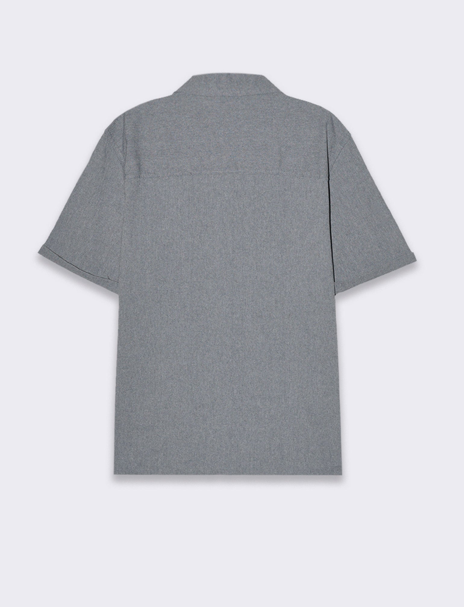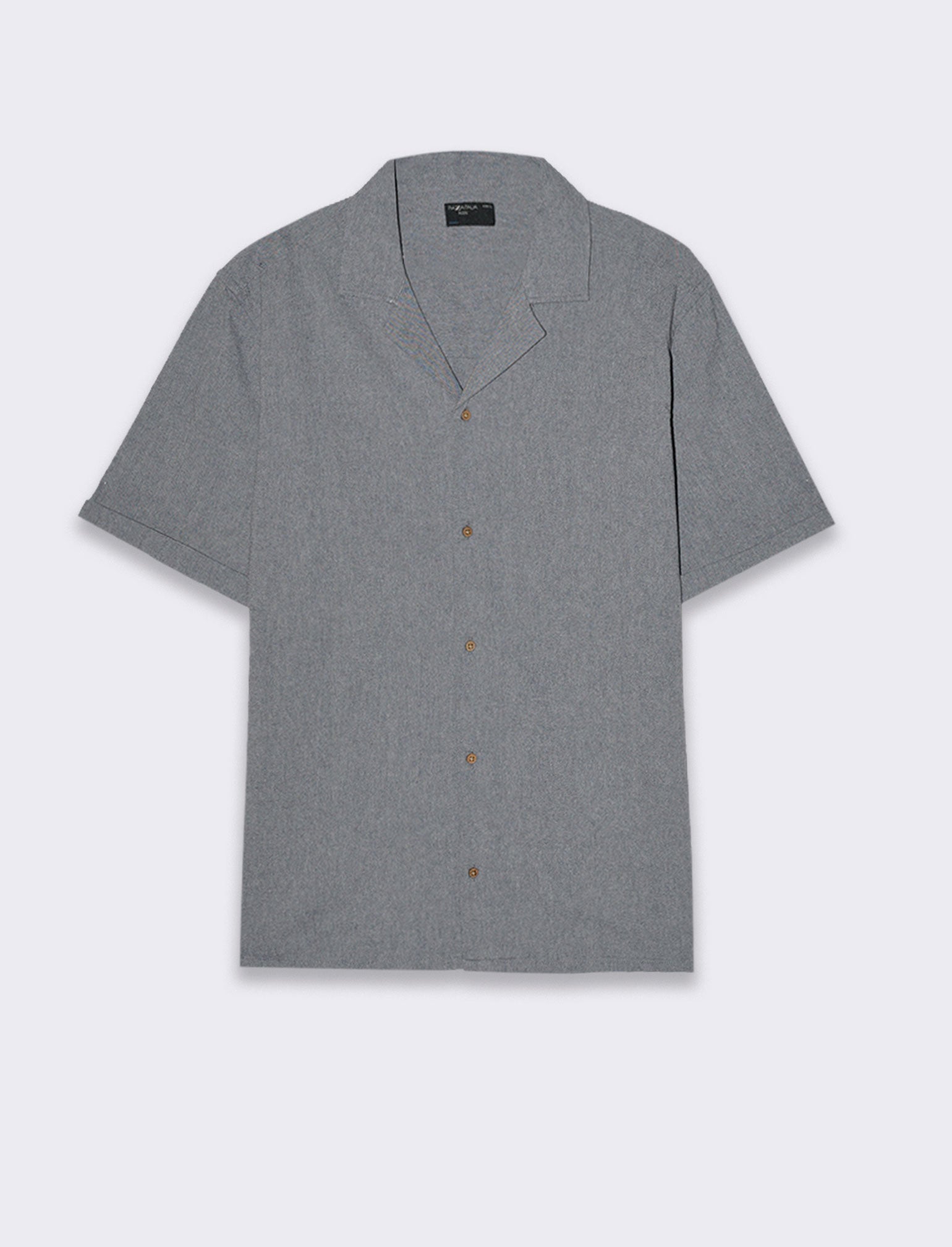 Camicia da uomo realizzata in un morbido tessuto di cotone con un elegante effetto goffrato, che offre una sensazione di freschezza e comfort. Il colletto bowling conferisce un tocco di stile informale, mentre le maniche corte la rendono ideale per le giornate più calde. L'abbottonatura a vista aggiunge un elemento di modernità, mentre il taglio cropped soft fit valorizza la silhouette, rendendola perfetta per un look casual ma curato. Il prodotto è di colore Avion