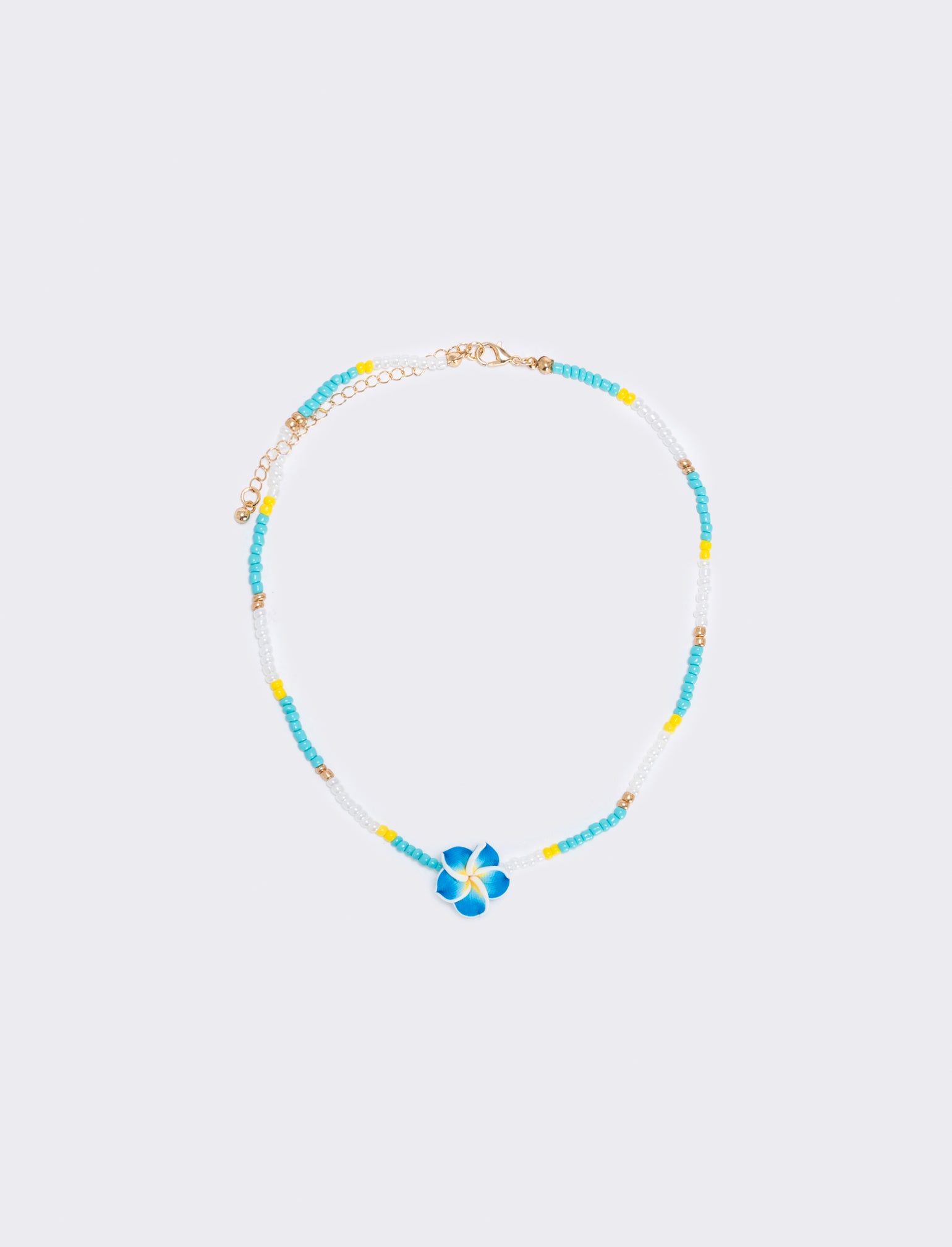 Collana donna perline con fiore Il prodotto è di colore Turchese