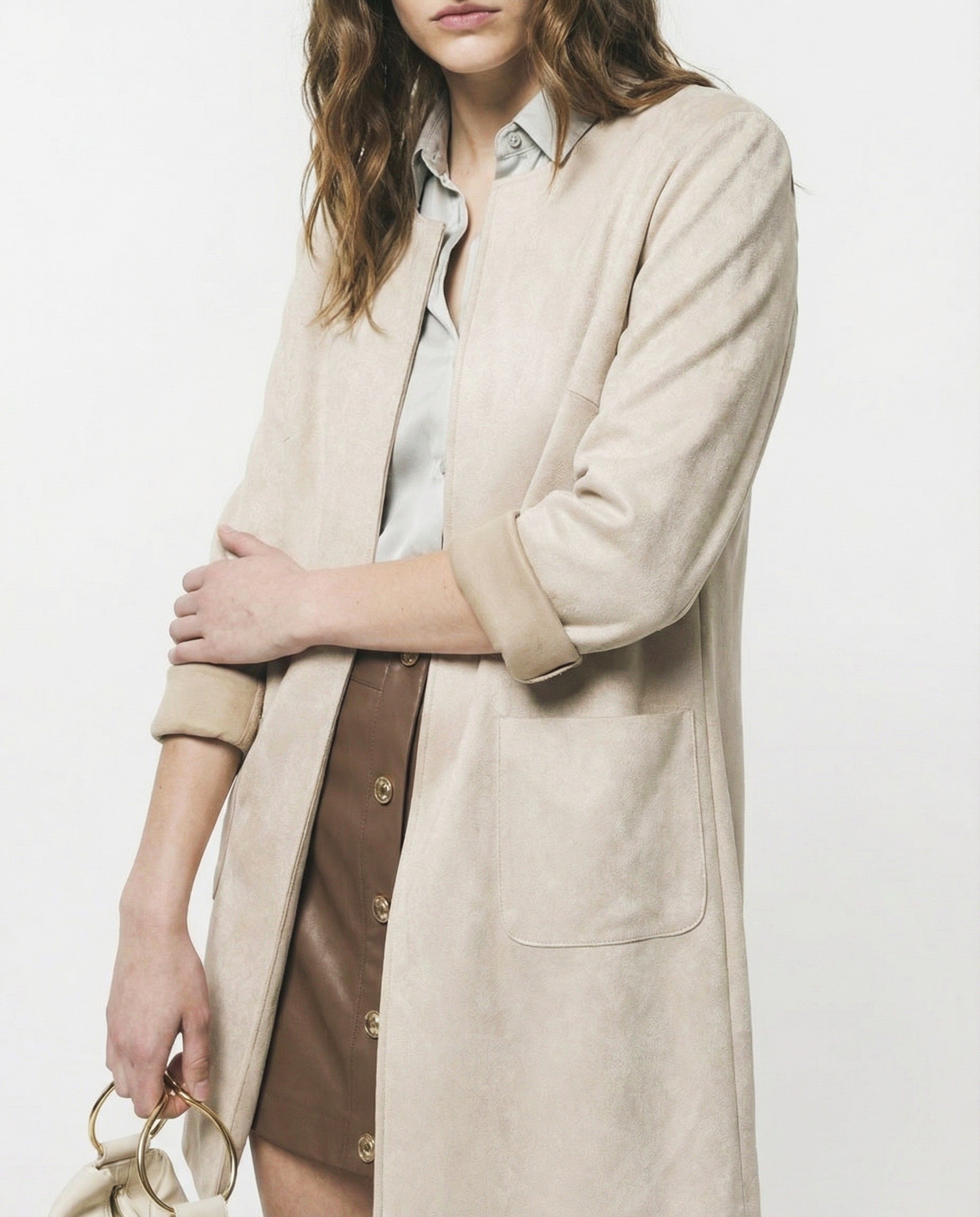 Giacca aperta no bottoni in tessuto suede Il prodotto è di colore Vaniglia