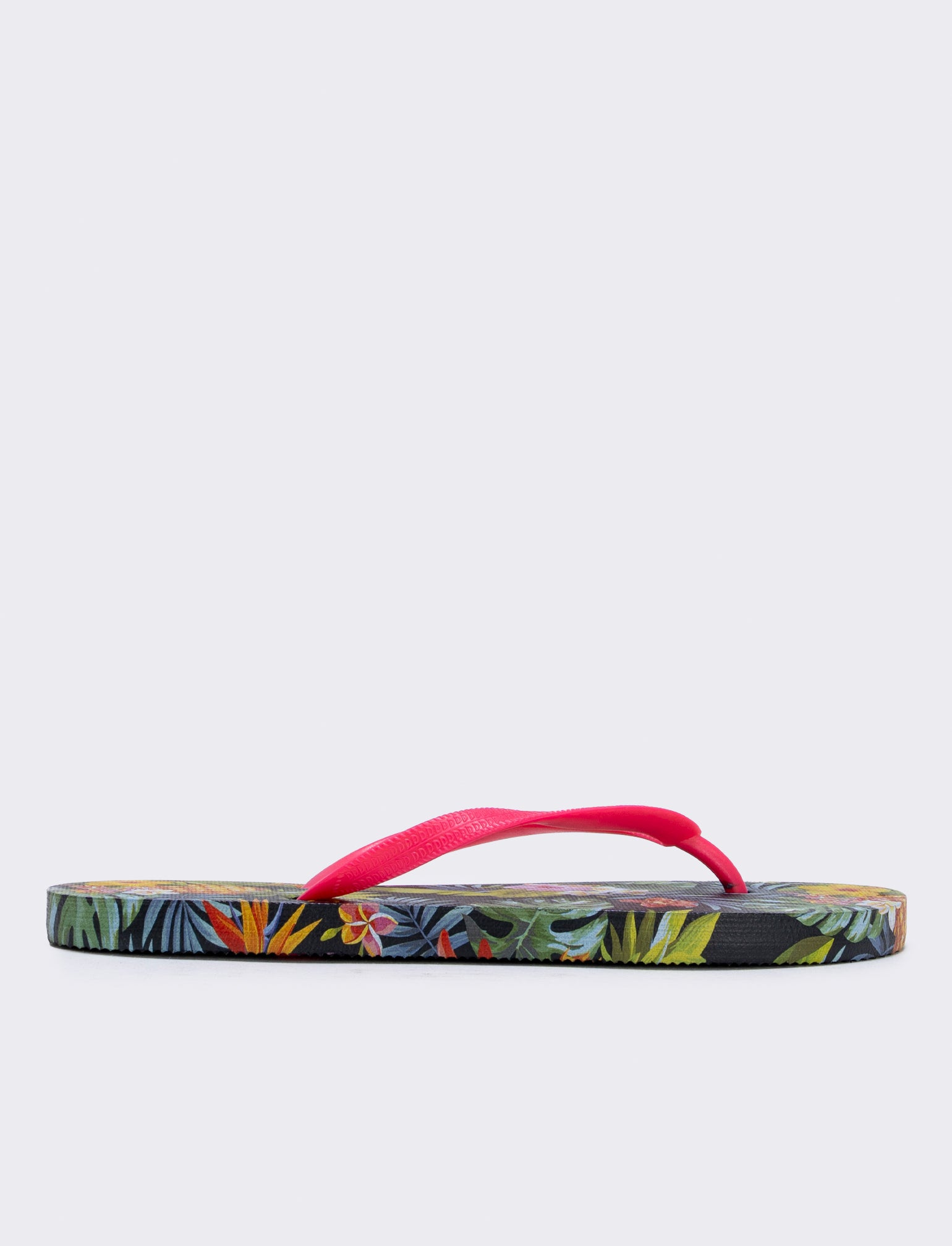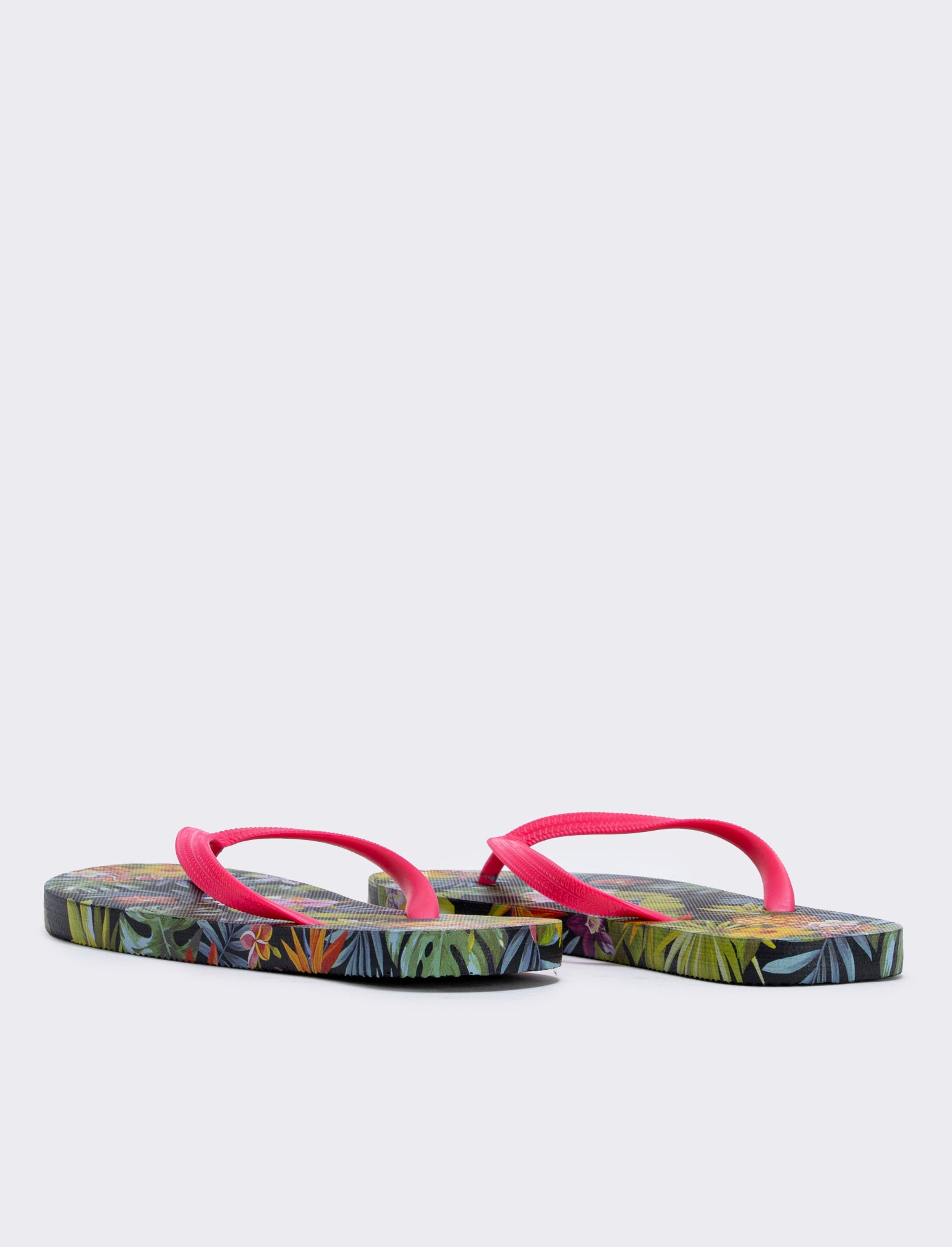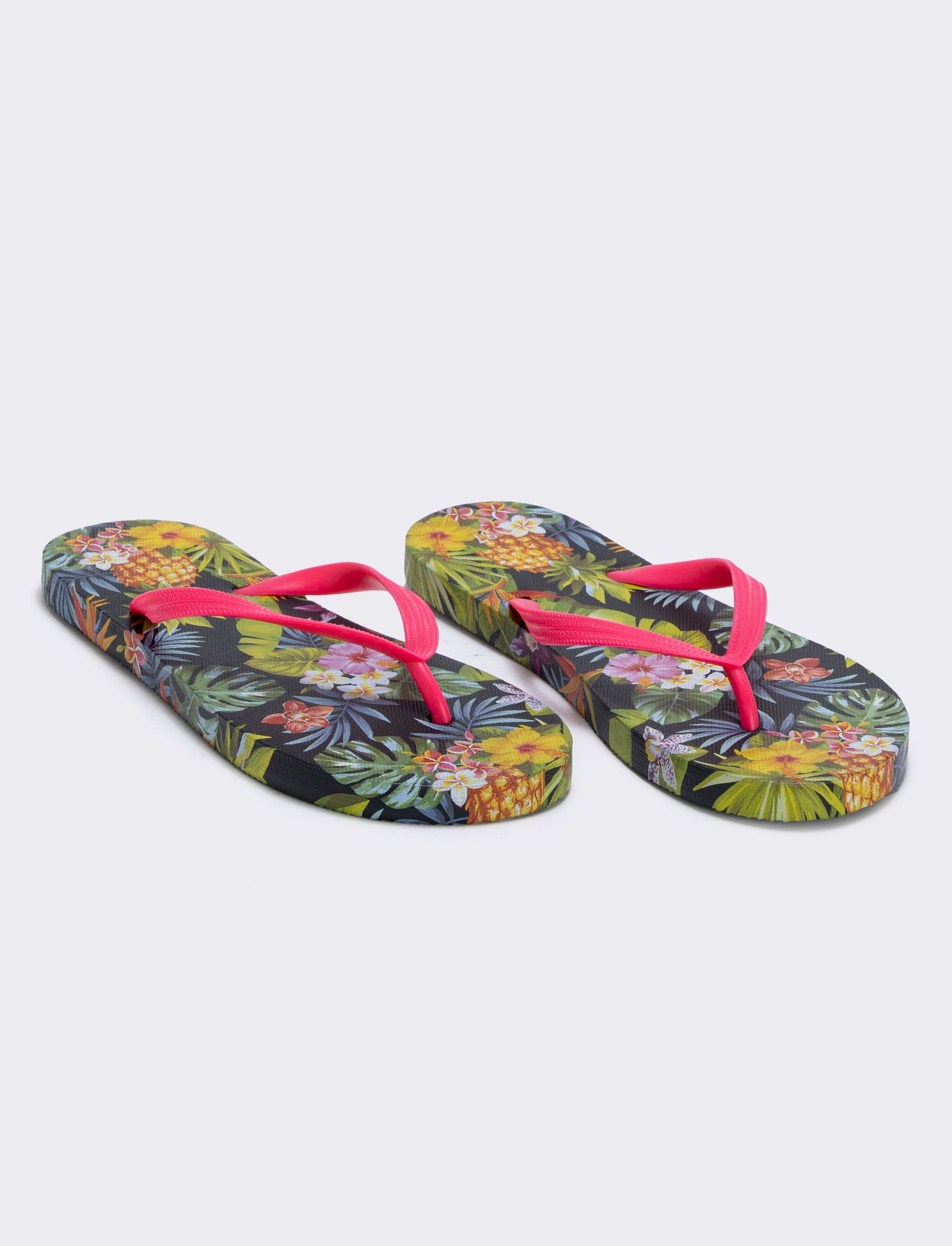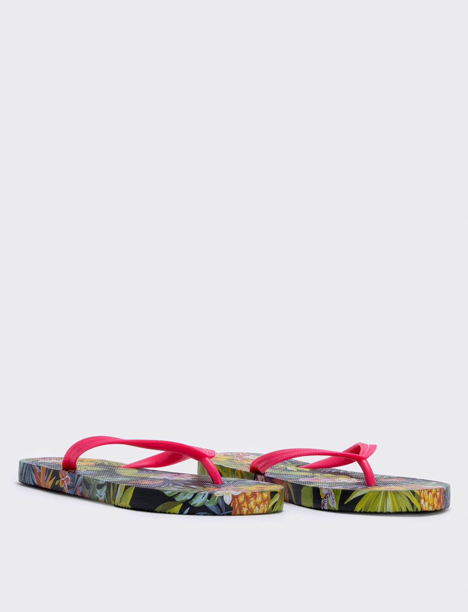Infradito con stampa esotica in pvc. In due varianti colore. Il prodotto è di colore Fuxia