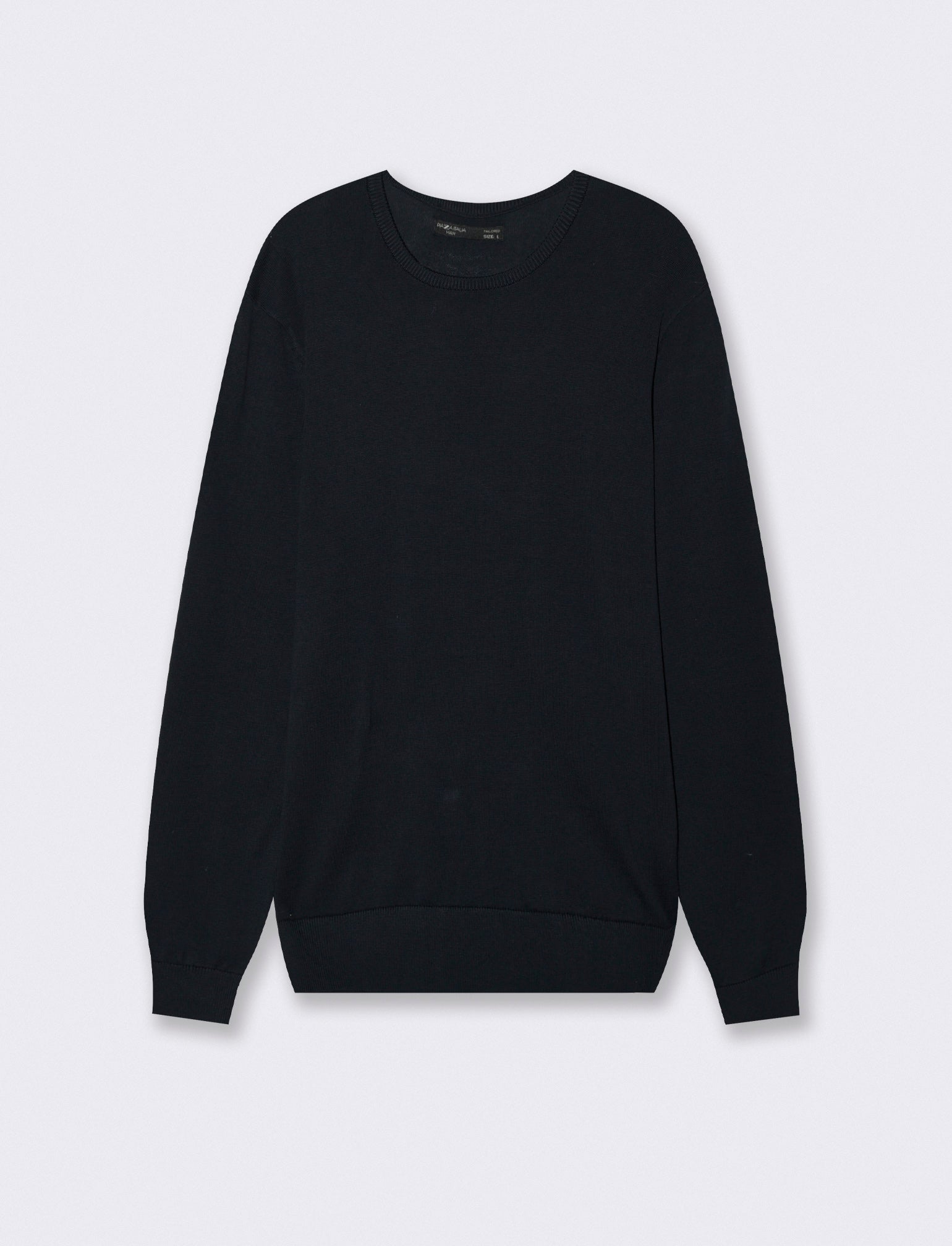 Maglia girocollo in puro cotone premium. Costina al collo, ai polsi e al fondo. Il prodotto è di colore Blu