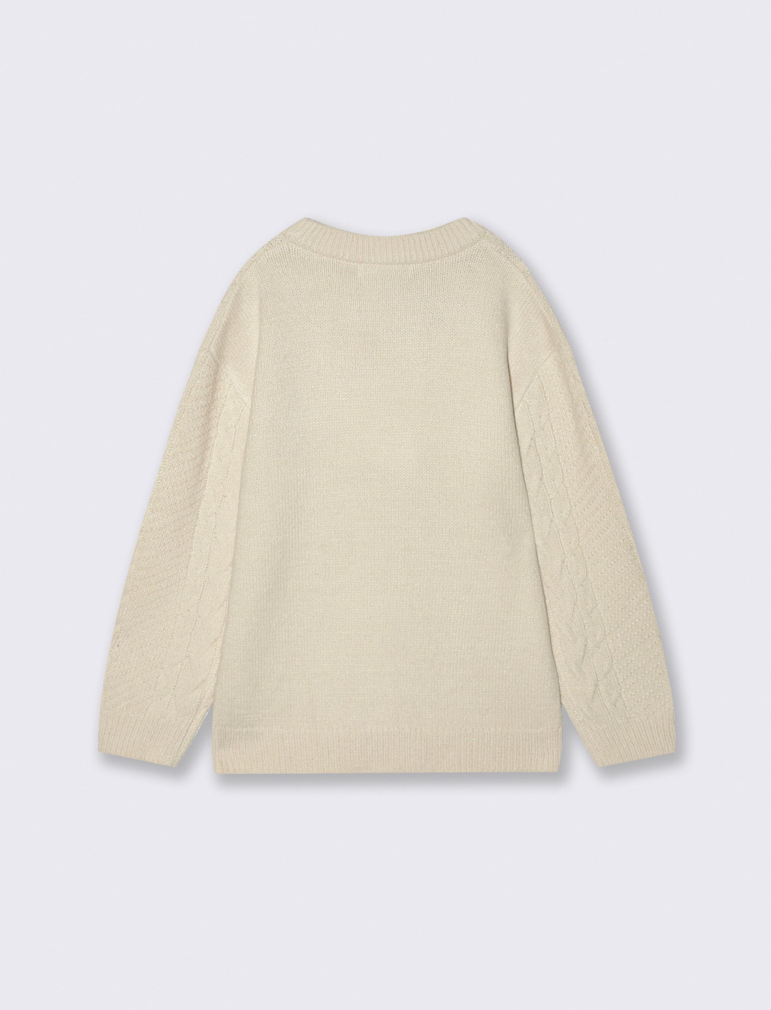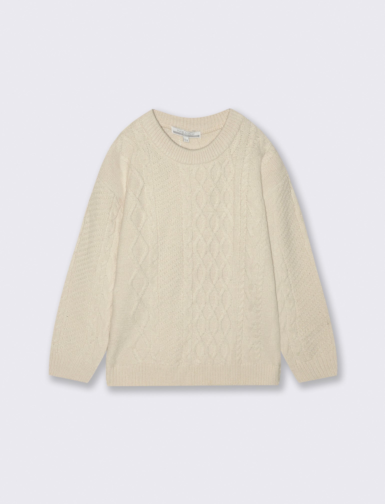 MAGLIA GIROCOLLO CON LAVORAZIONE DI TRECCE SUL DAVANTI E SULLE MANICHE, CAPO CALDO E ACCOGLIENTE PERFETTO PER UN LOOK INVERNALE. Il prodotto è di colore Beige