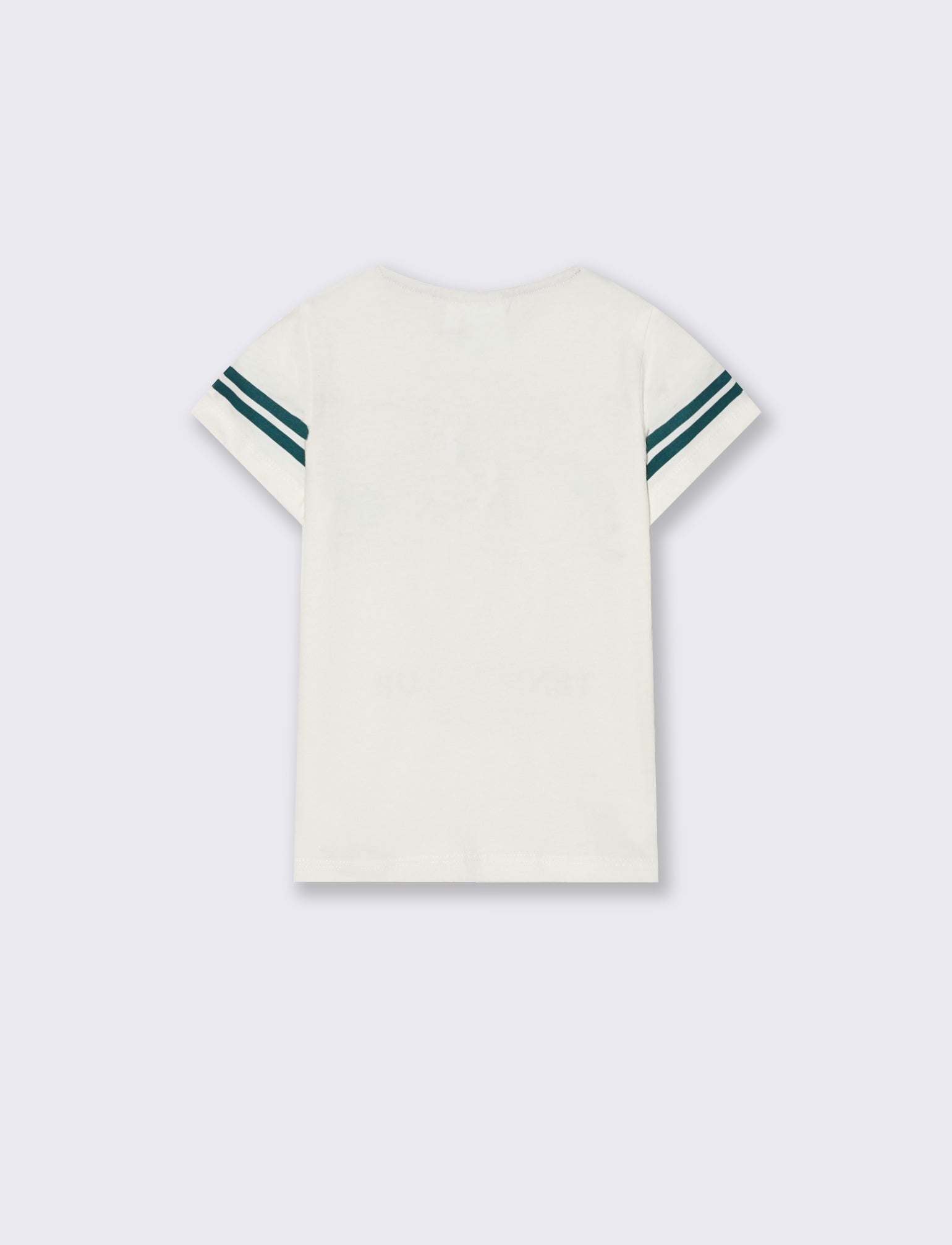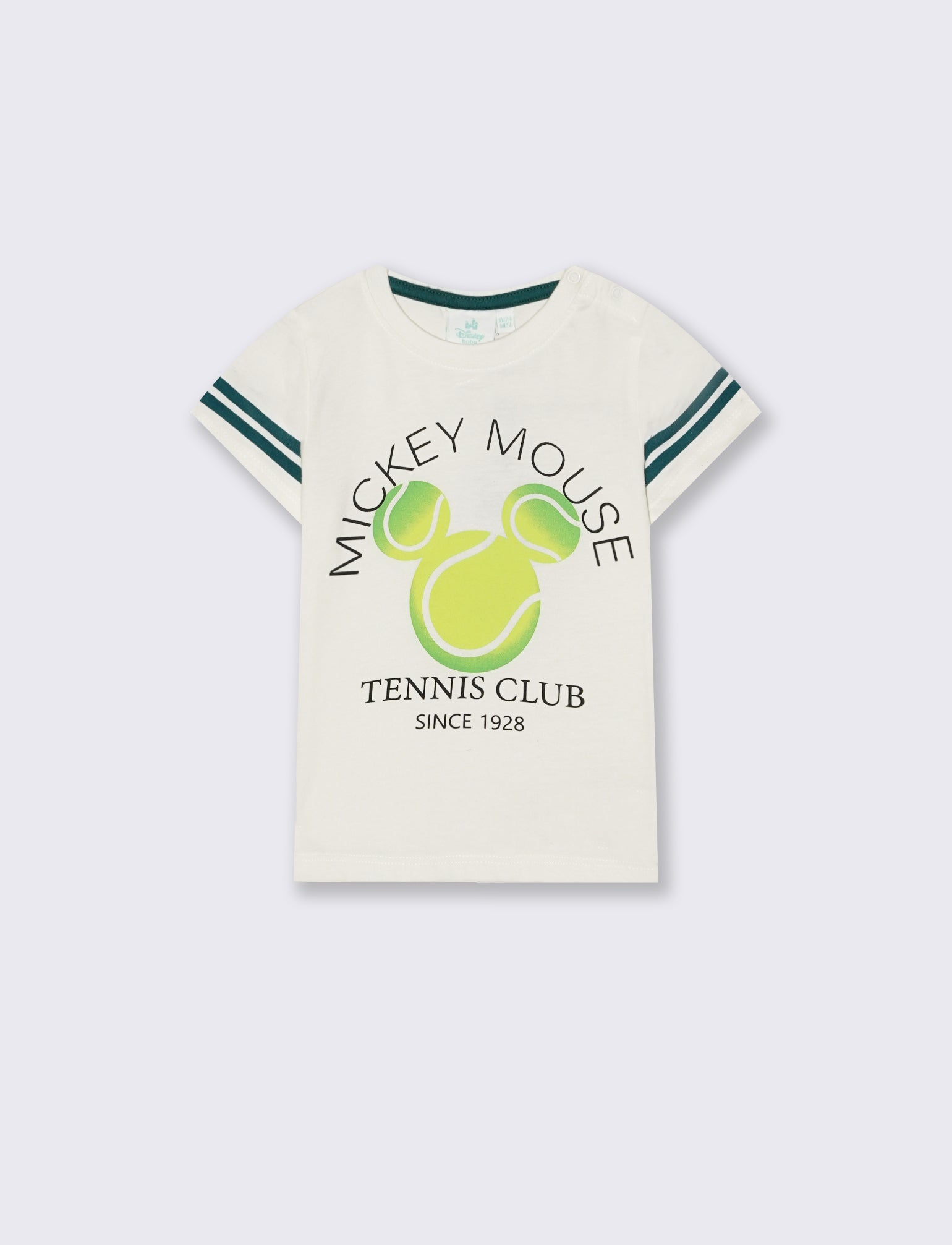 Maglietta manica corta, girocollo, con stampa di Topolino e stampa di bande colorate sulle maniche Il prodotto è di colore Bianco