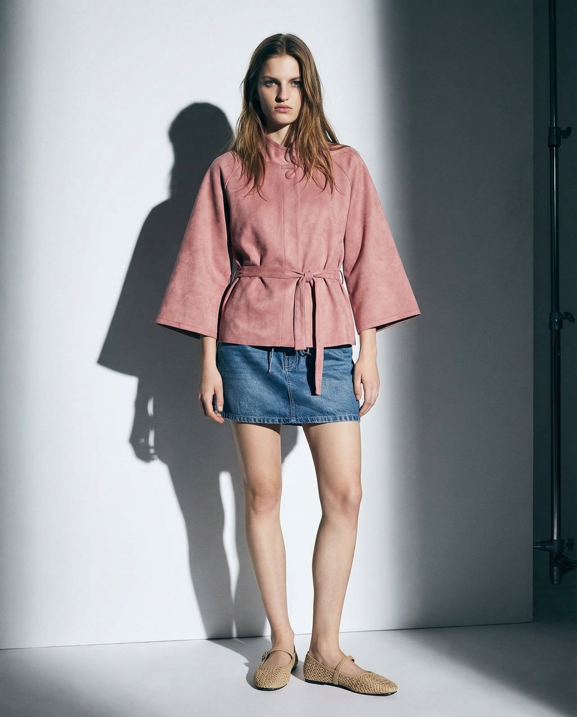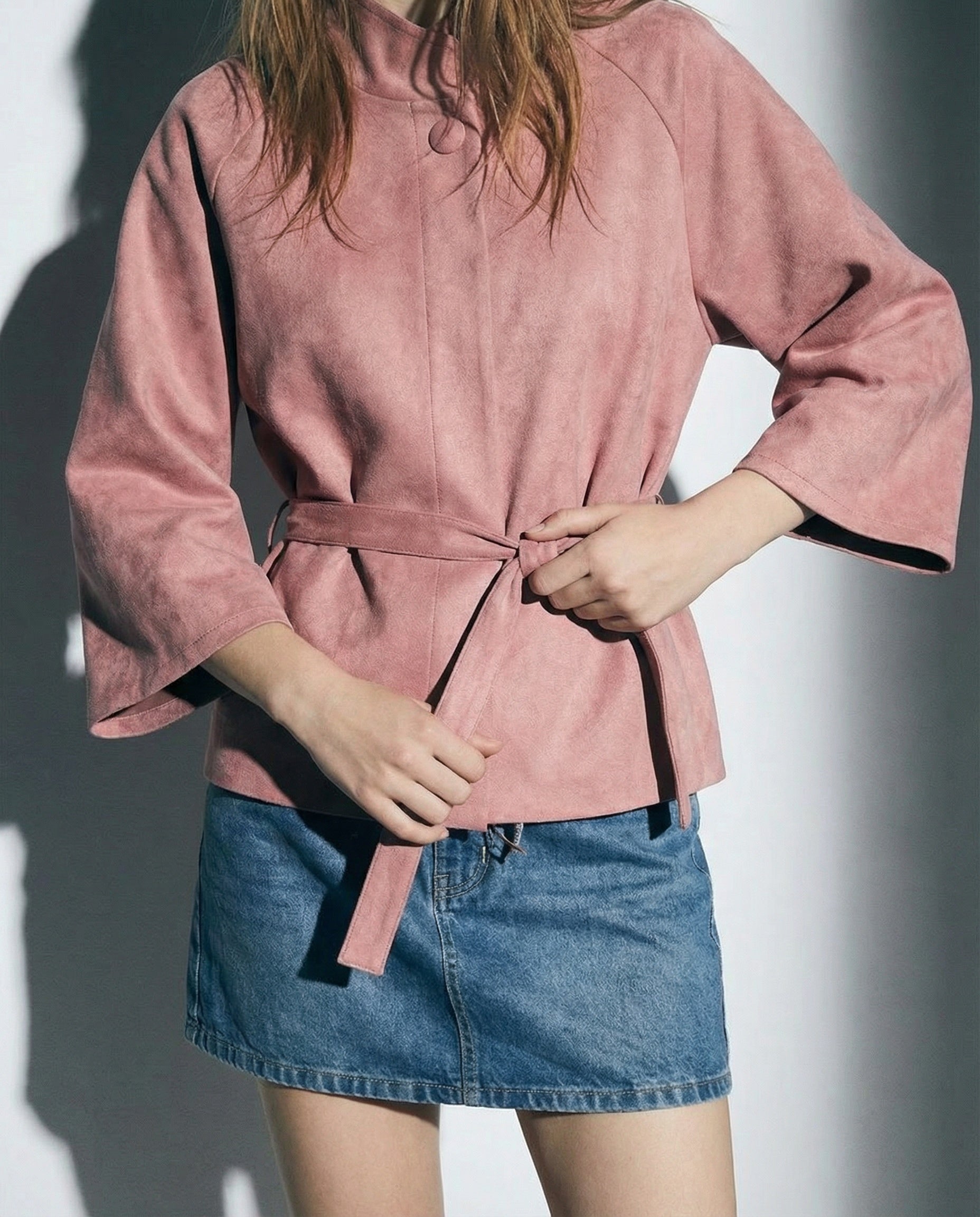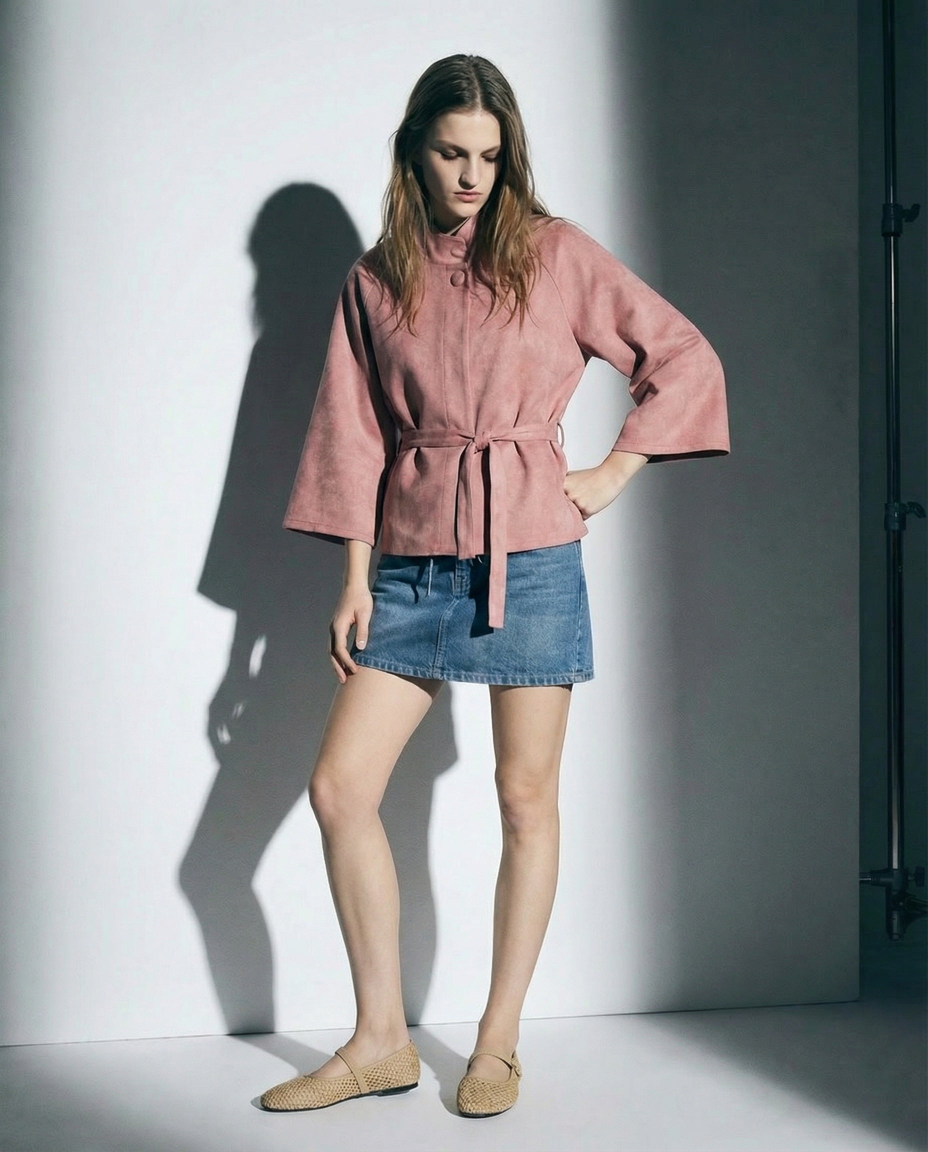 Mantella con bottoni in tessuto suede Il prodotto è di colore Cipria