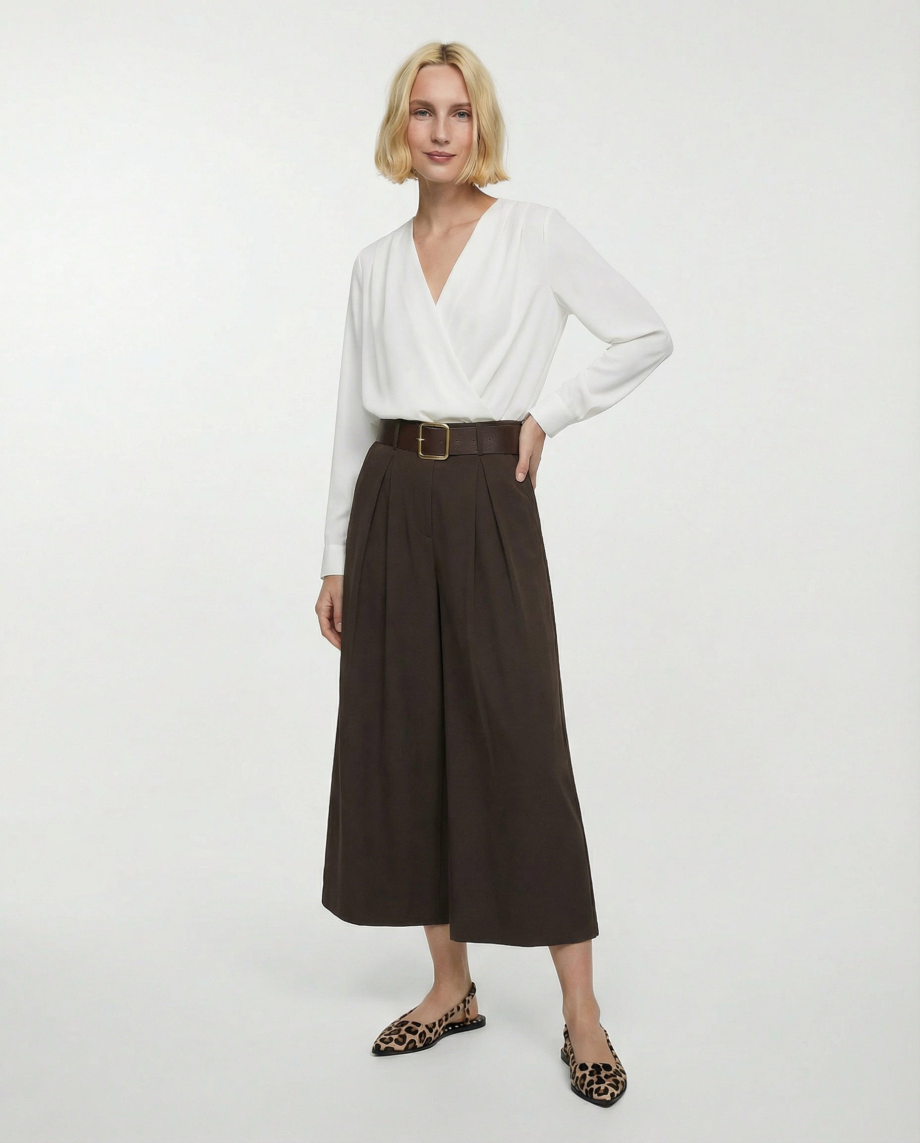 Pantalone con pieghe e cintura Il prodotto è di colore Moro
