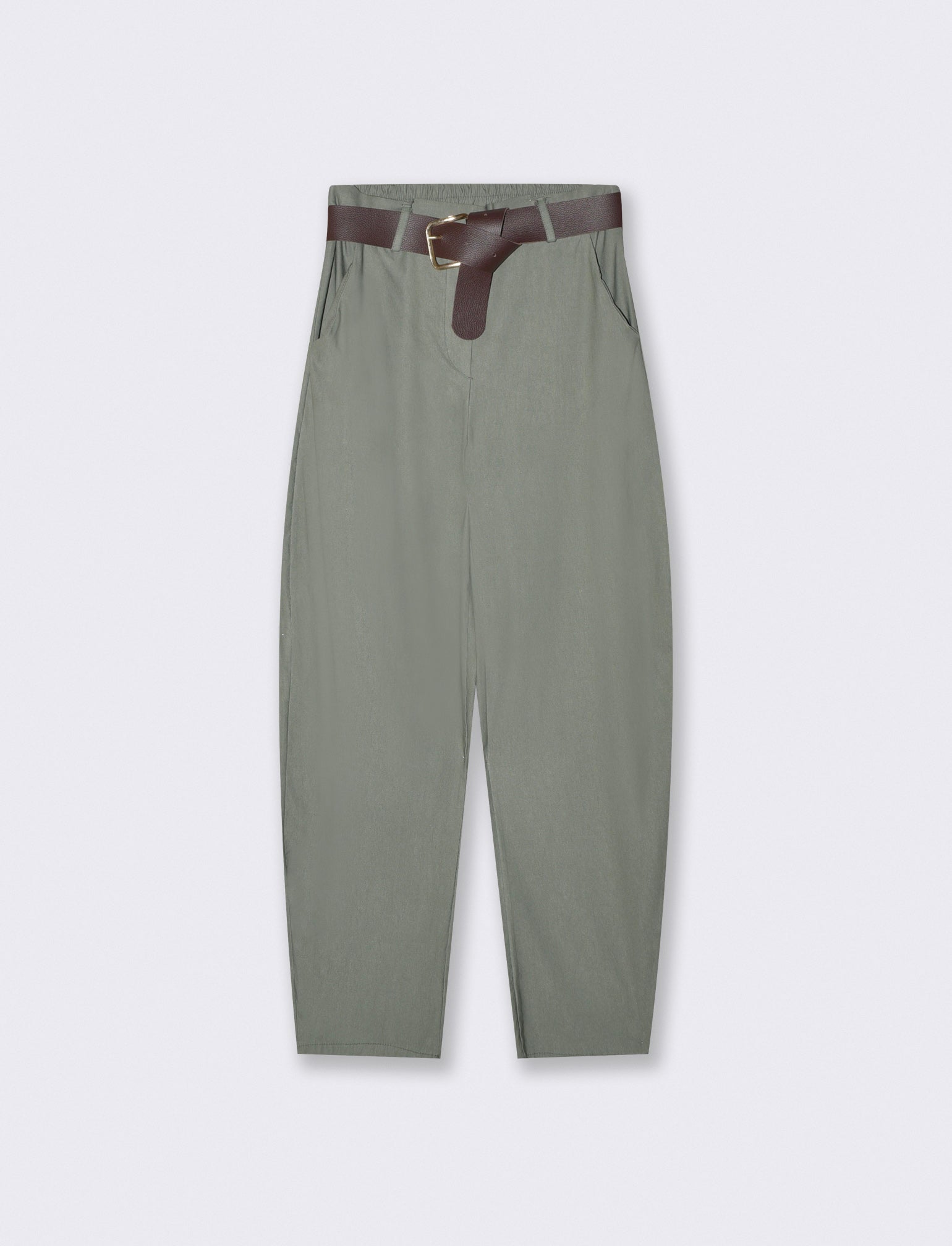 Pantaloni dritti con tasche lateerali e cintura. Il prodotto è di colore Ve.milit.