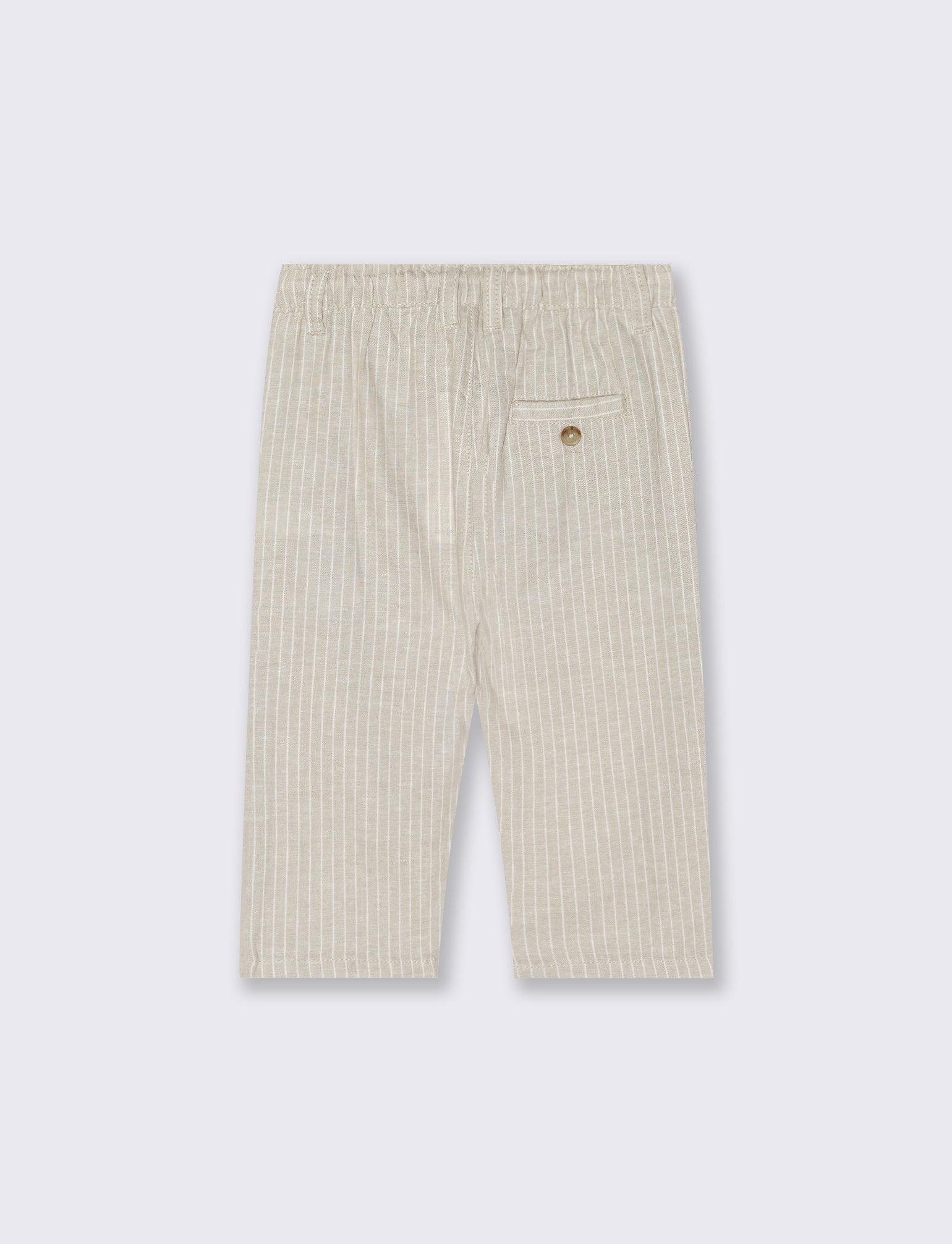 Pantaloni ampi, a righe, in misto lino e con coulisse, ideali per abbinamenti eleganti Il prodotto è di colore Beige