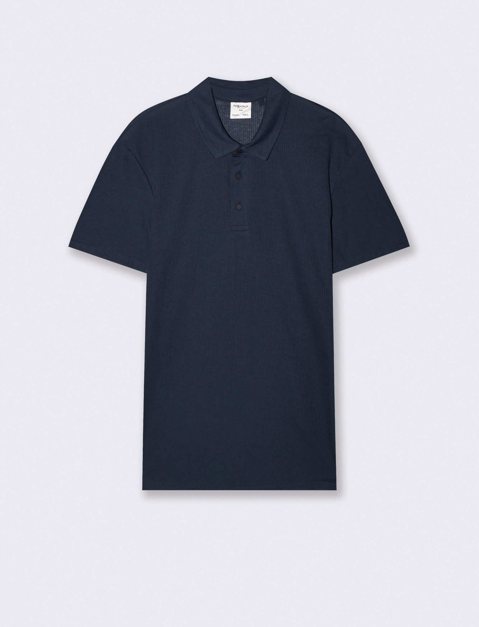 Polo in tessuto jacquard in cotone nylon effetto riga tono su tono . Colletto francese con abbottonatura a vista.. Maniche corte. Regular fit Il prodotto è di colore Blu