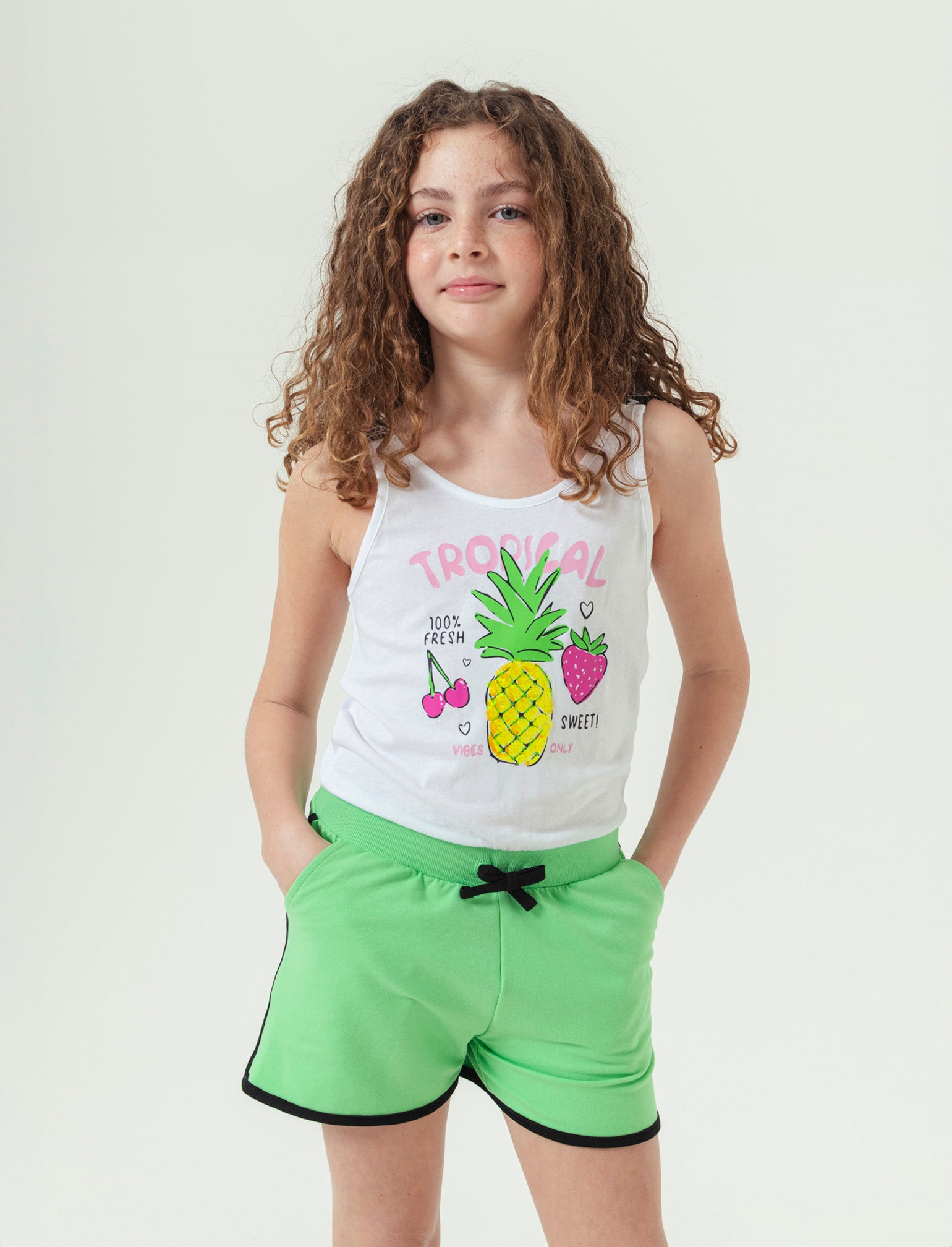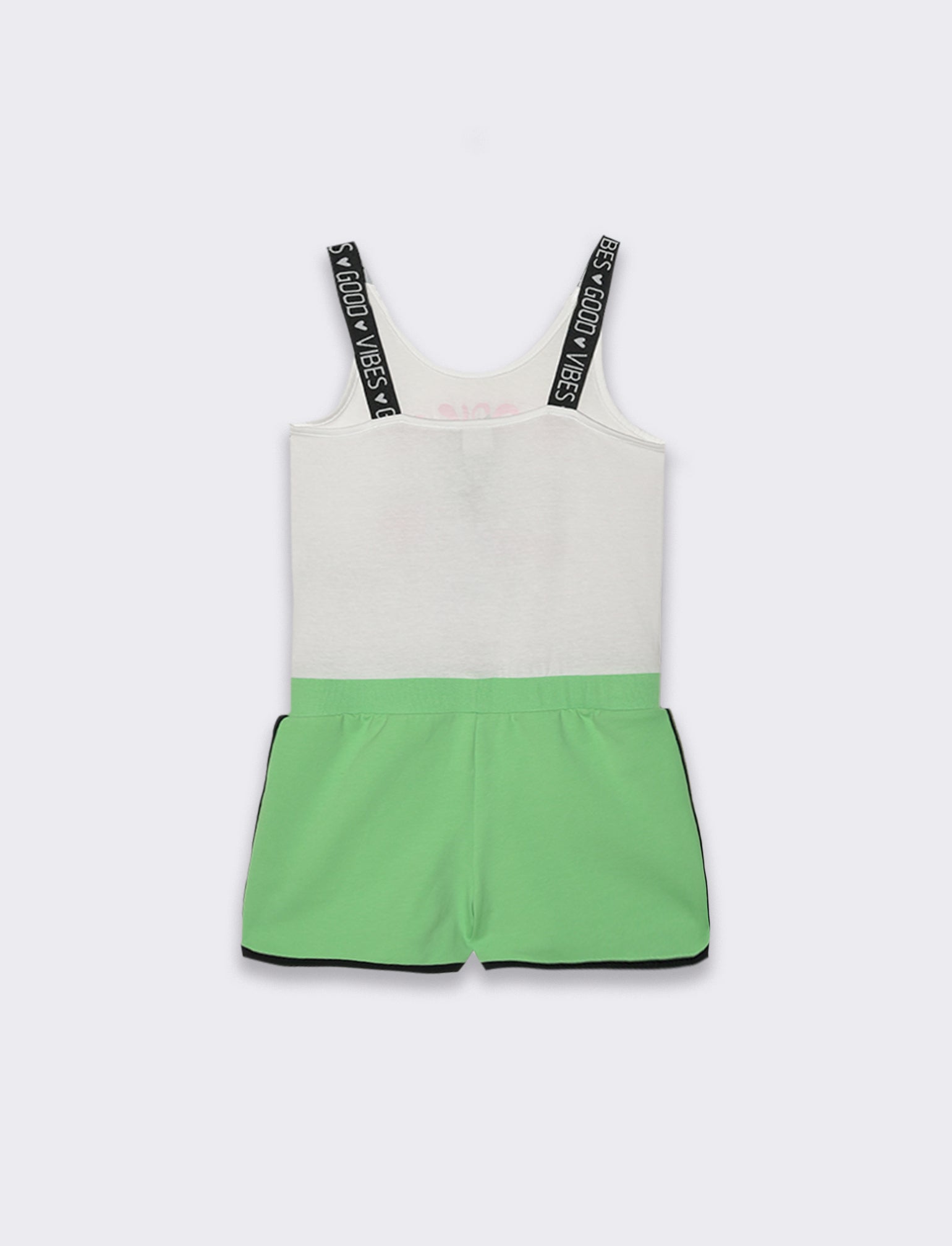 La salopette per bambina è un capo versatile e pratico, realizzata con bretelline elastiche che garantiscono comfort e libertà di movimento. Gli shorts, dotati di elastico in vita, si adattano perfettamente a ogni taglia, mentre le tasche offrono spazio per piccoli tesori e giochi. Perfetta per le giornate estive, questa salopette unisce stile e funzionalità, rendendo ogni avventura all'aperto ancora più divertente. Il prodotto è di colore Verde mela