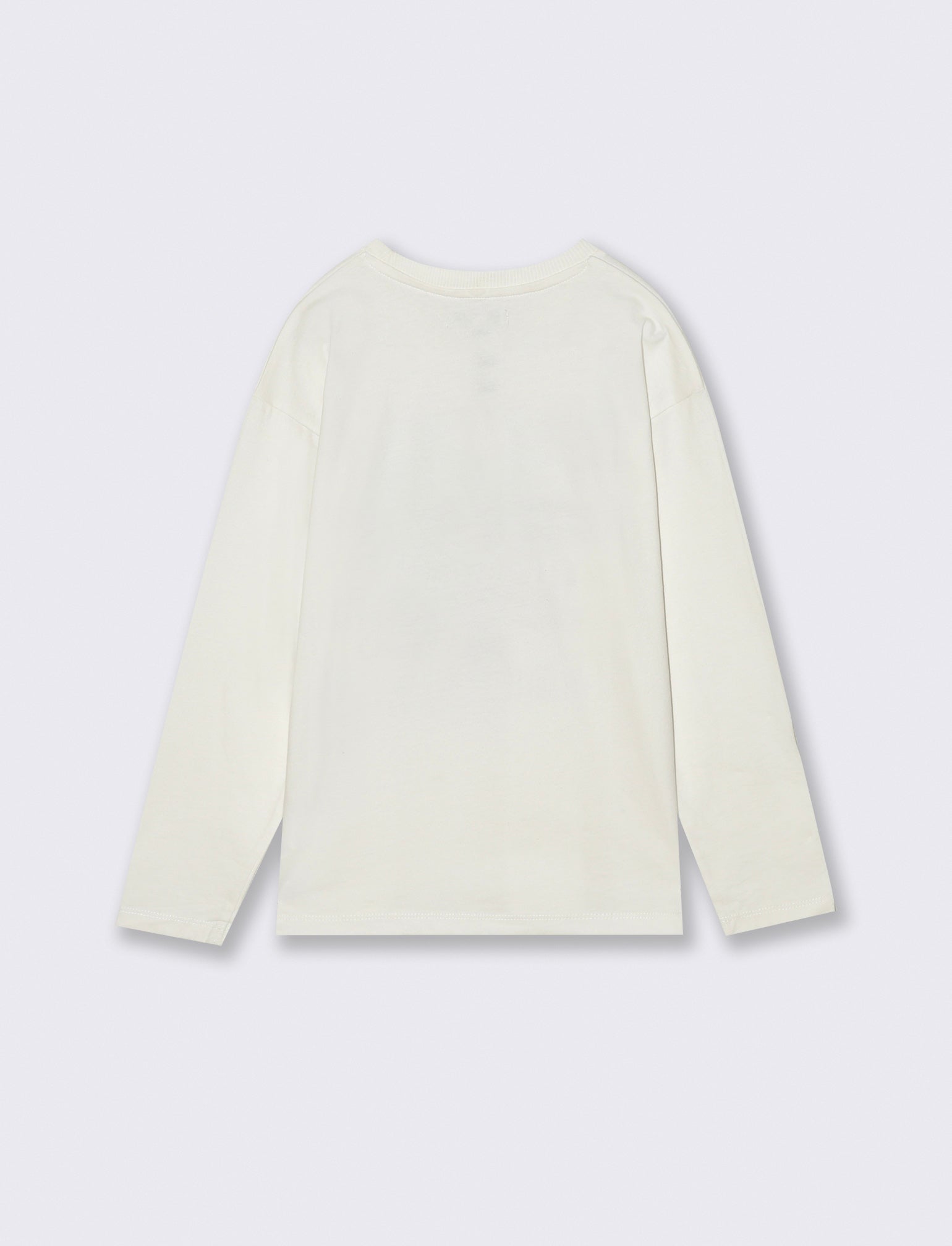 T-shirt in jersey di cotone, girocollo, spalle basse e maniche lunghe. Il capo presenta una stampa frontale, arricchito da un patch sul fondo. Vestibilità regular e comoda. Perfetta per look abituali, adatta per ogni occasione. Il prodotto è di colore Bianco latte