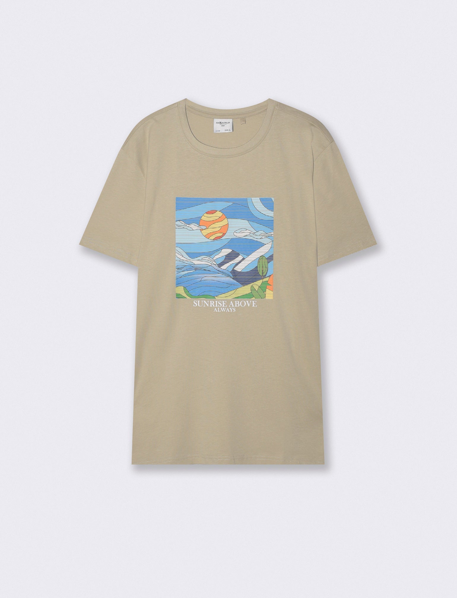 T-shirt girocollo con stampa a contrasto effetto mosaico ricamato, maniche corte regular fit in jersey puro cotone. Il prodotto è di colore Grigio stone