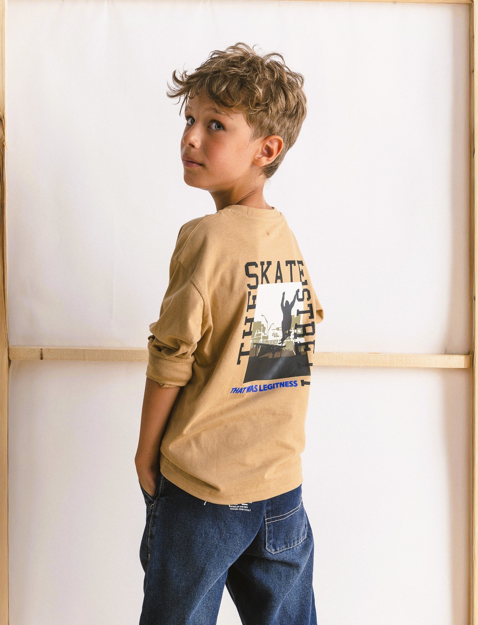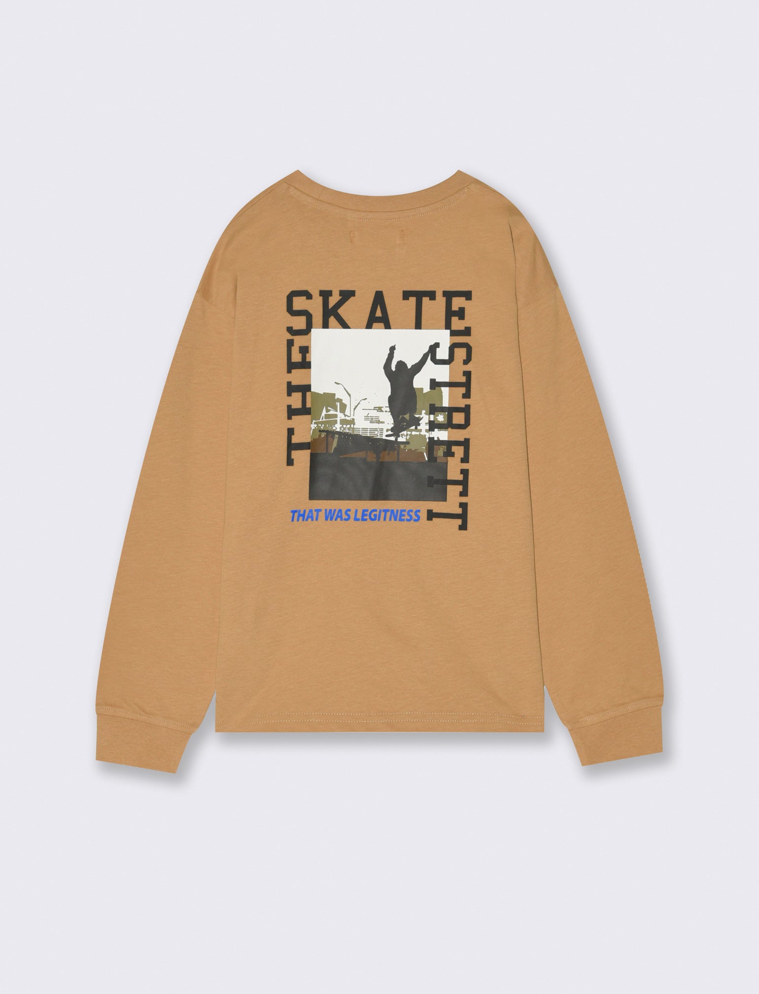 T-shirt in jersey di cotone, girocollo, spalle basse e maniche lunghe con bordino a costine. Il capo presenta una piccola stampa frontale in stile graffiti e una stampa posteriore minimal. Vestibilità regular e comoda. Perfetta per look casual e informali, si abbina facilmente a jeans e sneakers. Il prodotto è di colore Beige biscotto