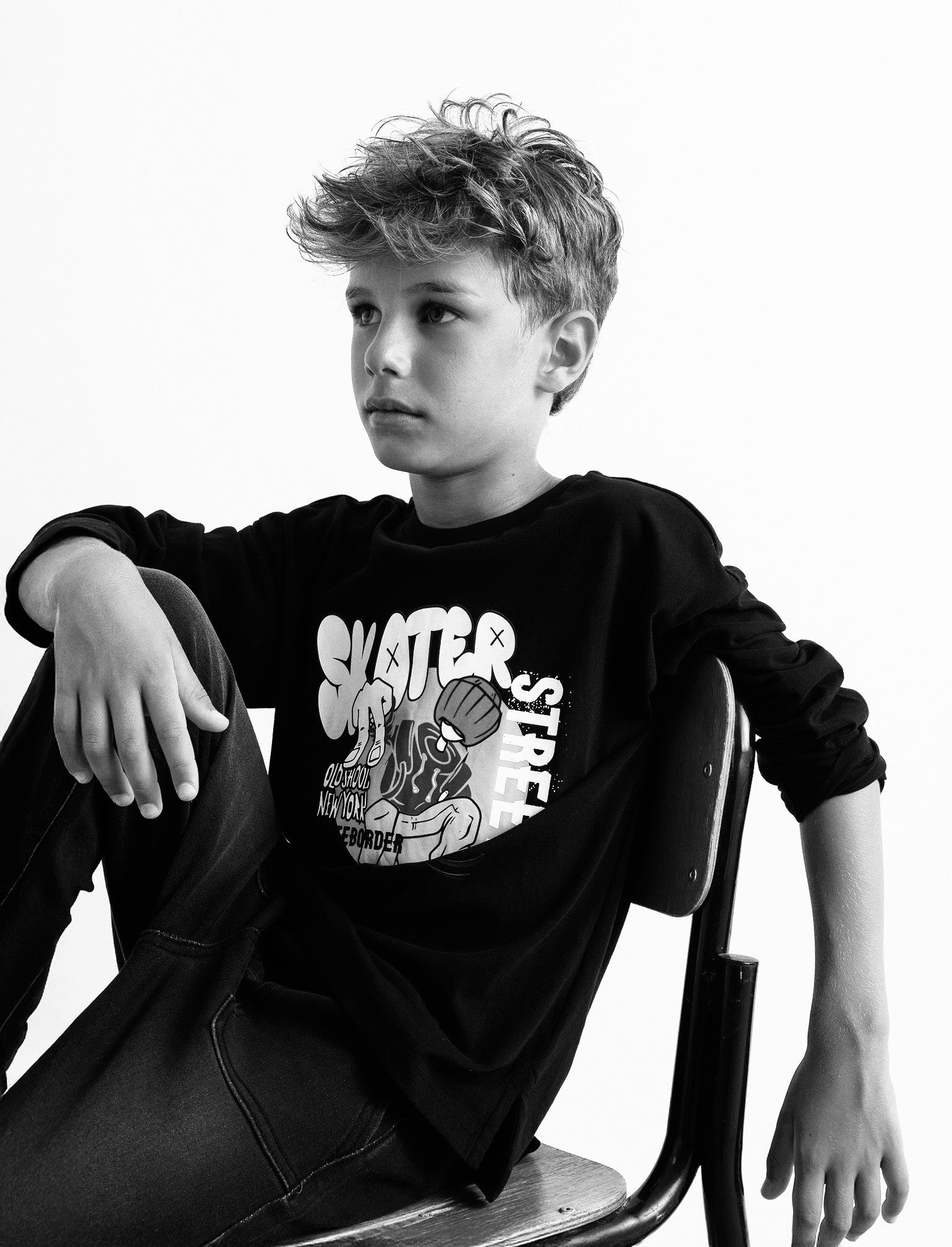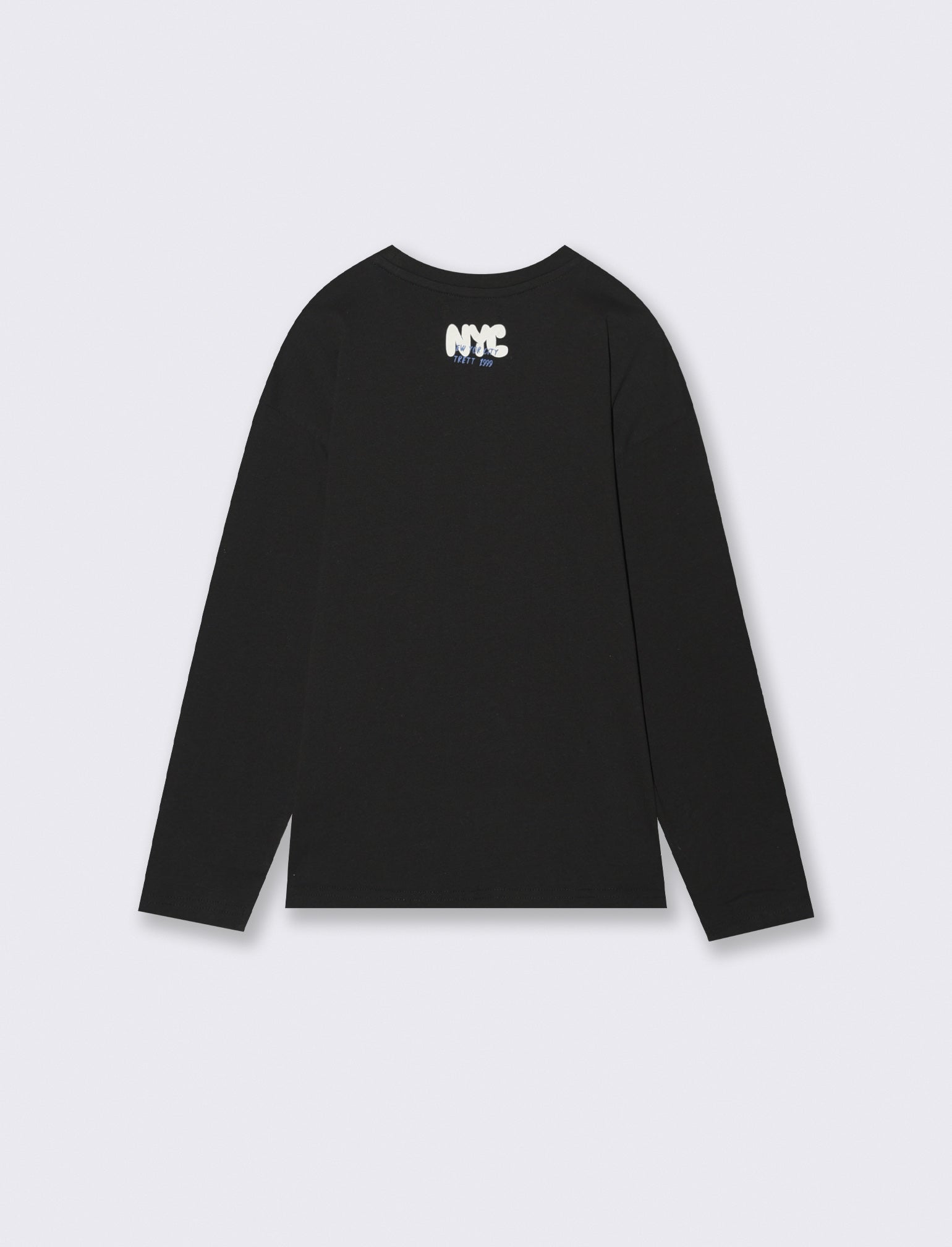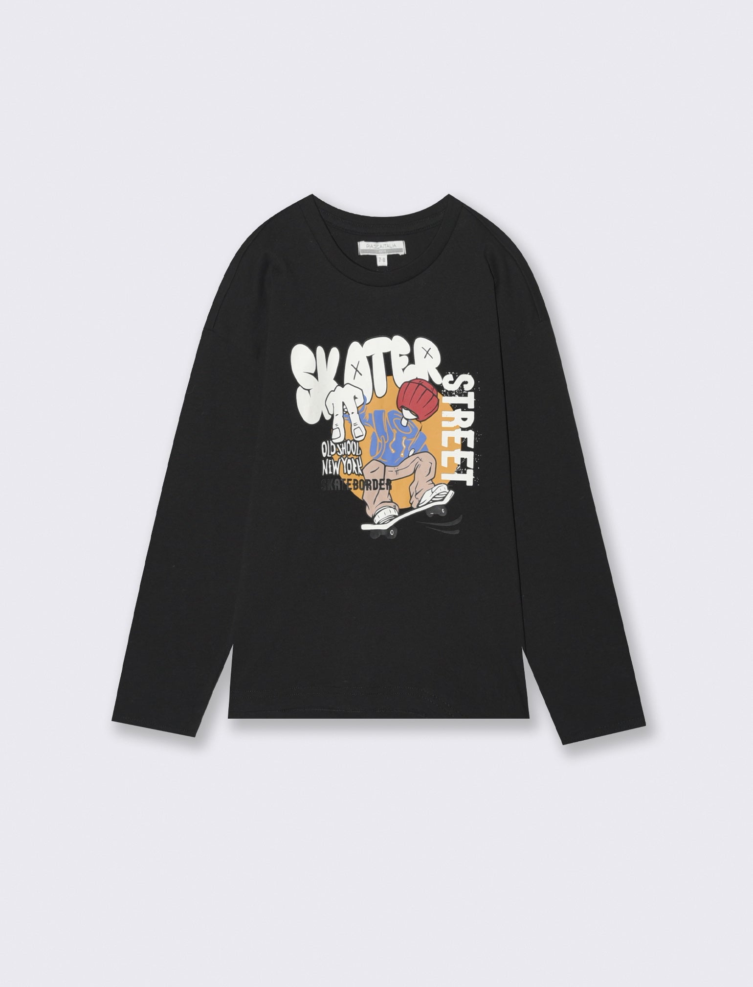 T-shirt in jersey di cotone, girocollo e maniche lunghe. Il capo presenta una stampa frontale ispirata allo stile street e graffiti Vestibilità regular e comoda. Perfetta per un outfit veloce e moderno. Il prodotto è di colore Nero