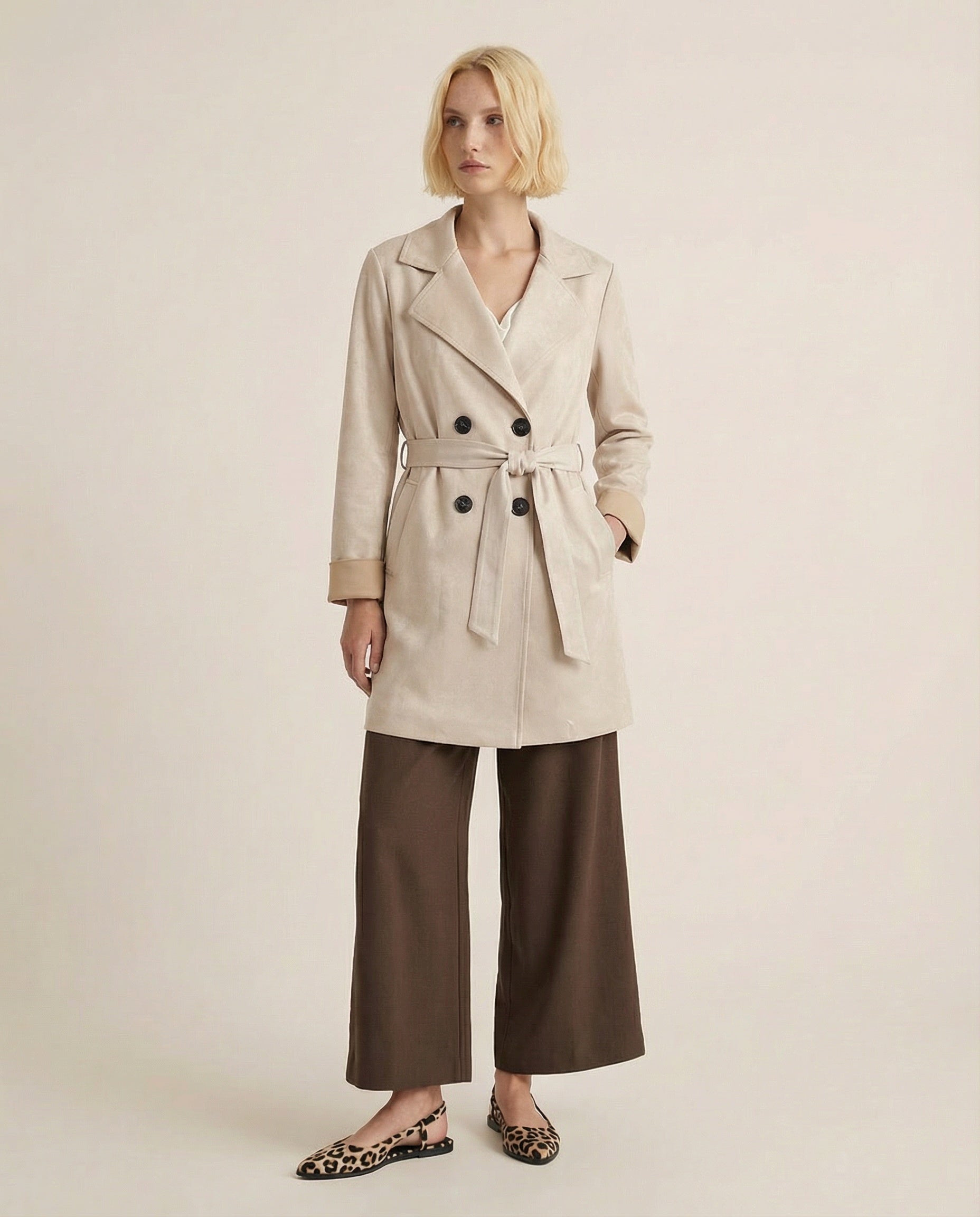 Trench in tessuto suede Il prodotto è di colore Vaniglia