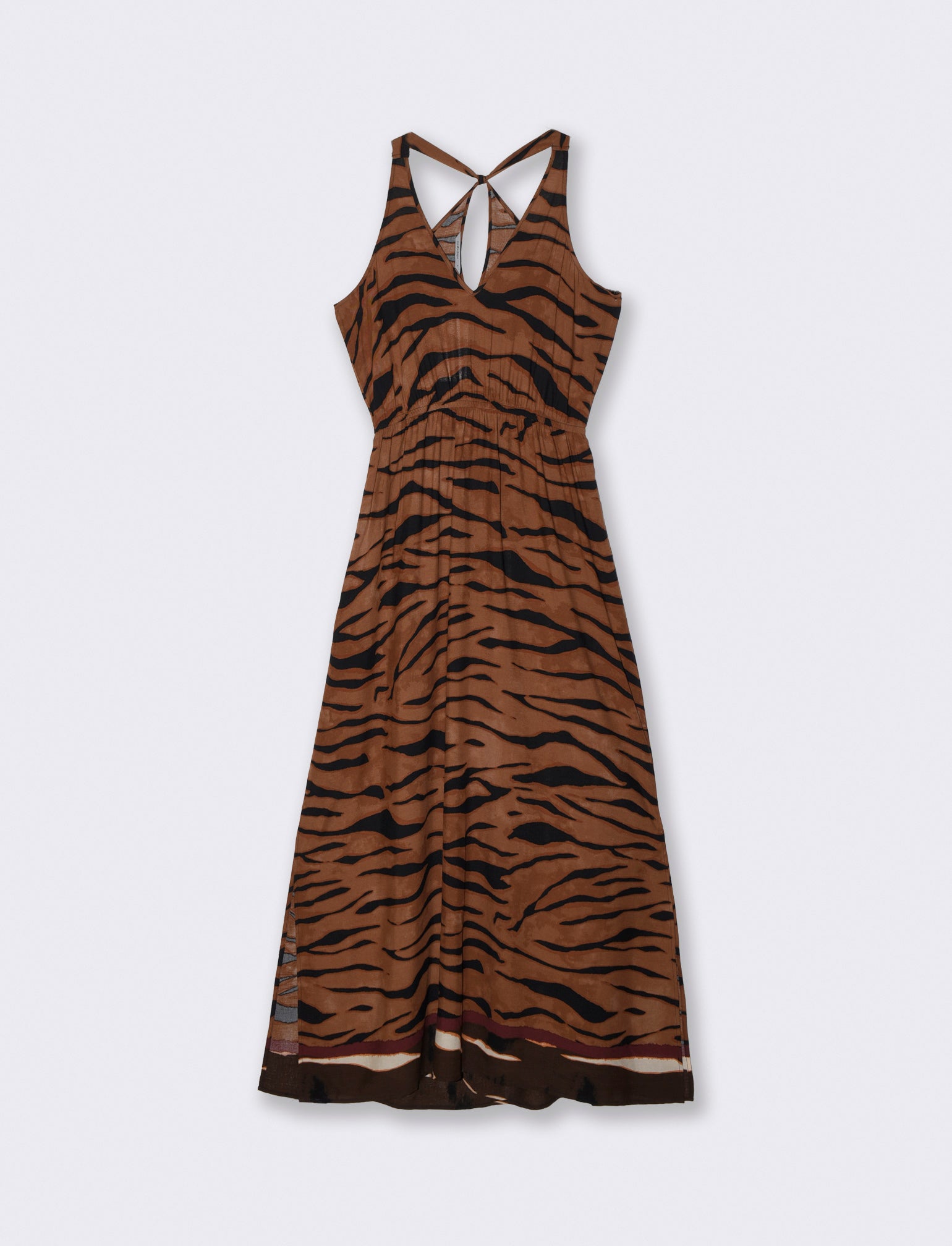 VESTITO LUNGO CON SCOLLO A V, ELASTICO IN VITA E SPACCHI LATERALI. Il prodotto è di colore var 1